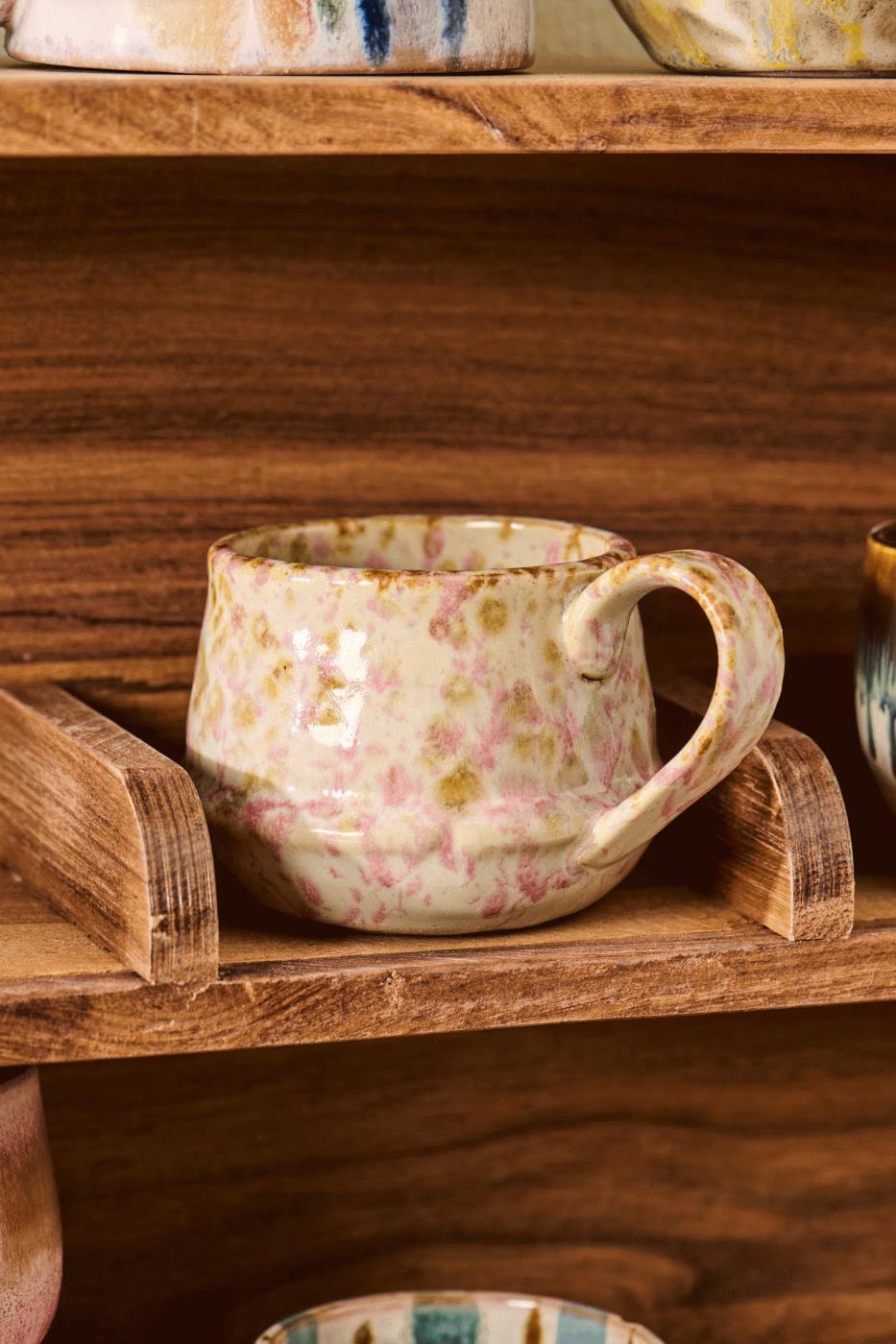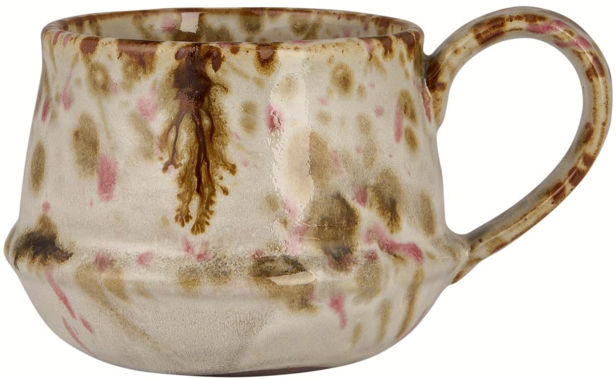 Das Besondere an diesem Becher ist seine außergewöhnliche Glasur, die braune, grüne und rosafarbene Nuancen in einem harmonischen Zusammenspiel kombiniert. Dadurch entsteht ein organisches und handgemaltes Erscheinungsbild, das jeden Becher zu einem einzigartigen Keramikstück macht. Die warme Farbpalette fügt sich perfekt in moderne wie klassische Küchen ein und bringt einen Hauch skandinavischer Gemütlichkeit in dein Zuhause.