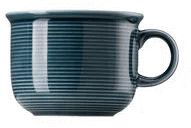 Mit diesem stilvollen Becher in Night Blue holst du dir ein Stück skandinavischer Ruhe und Eleganz in dein Zuhause. Der Thomas Trend Colour Becher mit Henkel gehört zu einer der weltweit beliebtesten Geschirrserien für den täglichen Gebrauch und überzeugt durch sein zeitloses Design sowie höchste Qualität. Die tiefe Night Blue-Nuance wurde von der charakteristischen Farbpalette der skandinavischen Natur inspiriert und repräsentiert die sogenannte „blaue Stunde" – jenen magischen Moment, in dem der Tag sanft in den Abend übergeht. Diese beruhigende Farbe schafft eine angenehme und entspannte Atmosphäre, die sich perfekt für gemütliche Kaffeepausen oder festliche Anlässe eignet.Der Becher ist aus hochwertigem Porzellan gefertigt und mit einer exklusiv entwickelten Farbglasur versehen, die ihm ein frisches und markantes Aussehen verleiht. Die zylindrische Form mit einem Durchmesser von 6,8 cm und einer Höhe von 6,2 cm verleiht dem Becher ein modernes und zeitloses Design, das sich mühelos in jeden Einrichtungsstil einfügt – von Scandi Chic bis hin zu gemütlichem skandinavischem Design. Mit einem Fassungsvermögen von 18 cl ist der Becher ideal für Kaffee, Tee oder andere warme Getränke und liegt dank des praktischen Henkels angenehm in der Hand.