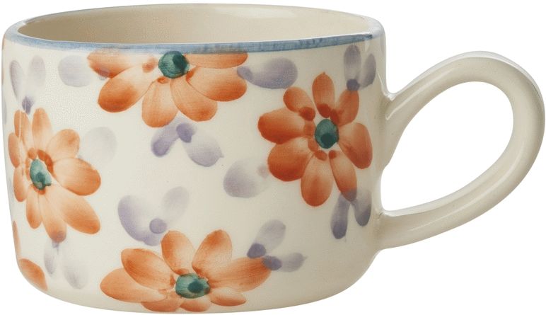 Diese handbemalte Cappuccinotasse von RICE vereint portugiesische Handwerkstradition mit skandinavischem Designverständnis und bringt mit ihrer bezaubernden orangefarbenen Blütendekoration pure Lebensfreude an deinen Tisch. Jede einzelne Tasse wird von erfahrenen Kunsthandwerkern gefertigt, die durch sorgfältig aufgetragene Handbemalung jedem Stück seinen ganz individuellen Charakter verleihen.