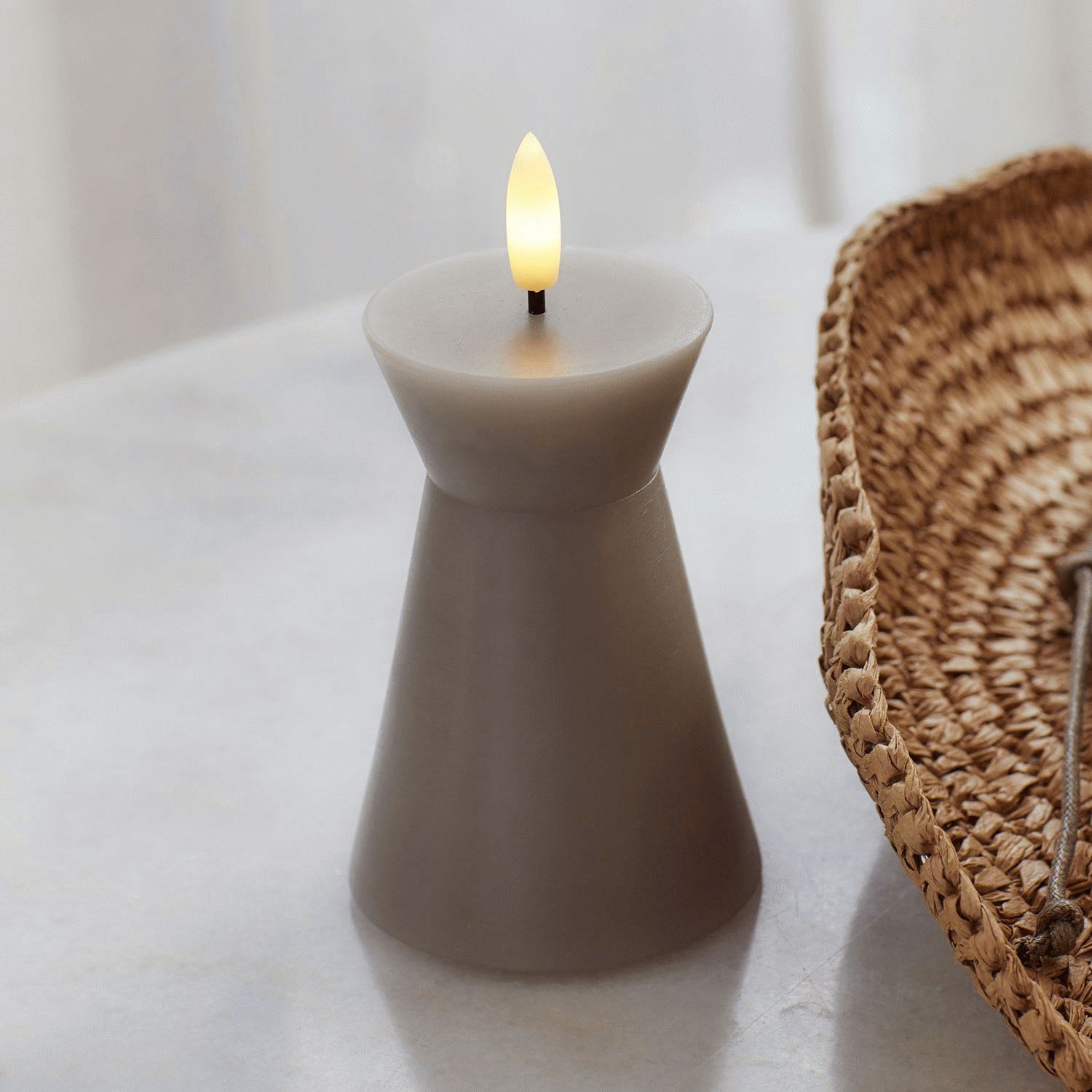 Mit dieser skulpturalen LED-Stumpenkerze von Sirius holst du dir skandinavisches Design und echtes Stearin in dein Zuhause – eine kegelförmige Ausführung, die moderne Raffinesse mit gemütlicher Lichtstimmung verbindet. Die Sille Nordic Sculpture Serie zeichnet sich durch ihre einzigartige, skulpturale Form aus, die das ganze Jahr über sowohl als dekoratives Element als auch als stimmungsvolle Lichtquelle dient. Gefertigt aus echtem Stearin mit einer eleganten matten Oberfläche in Warmgrau, verleiht dir dieses Produkt einen authentischen und exklusiven Ausdruck. Die charakteristische Kegelform macht es zu einem markanten Designelement, das sich natürlich in klassische wie moderne Einrichtungsstile einfügt. Das matte Finish unterstreicht die skandinavische Designsprache und schafft eine harmonische Balance zwischen Form und Funktion.Die fortschrittliche 3D-Flamme flackert natürlich und dimmt sanft auf und ab – ein illusionistischer Effekt, der kaum von einer echten Stearinkerze zu unterscheiden ist. Diese Technologie sichert dir die behagliche Atmosphäre traditioneller Kerzen, jedoch ohne Ruß, Rauch oder gefährliche Partikel. Dadurch ist die Sille-Kerze eine praktische Wahl für dein Raumklima und lässt sich bedenkenlos überall im Haus platzieren. Die LED-Technologie bietet eine beeindruckende Batterielaufzeit von circa 350 Stunden, sodass du viele Abende und Anlässe lang Freude daran hast. Betrieben wird sie mit 2 AA-Batterien (separat erhältlich), was dir die Flexibilität gibt, sie genau dort zu positionieren, wo du sie haben möchtest – ganz ohne Kabel oder Steckdose.