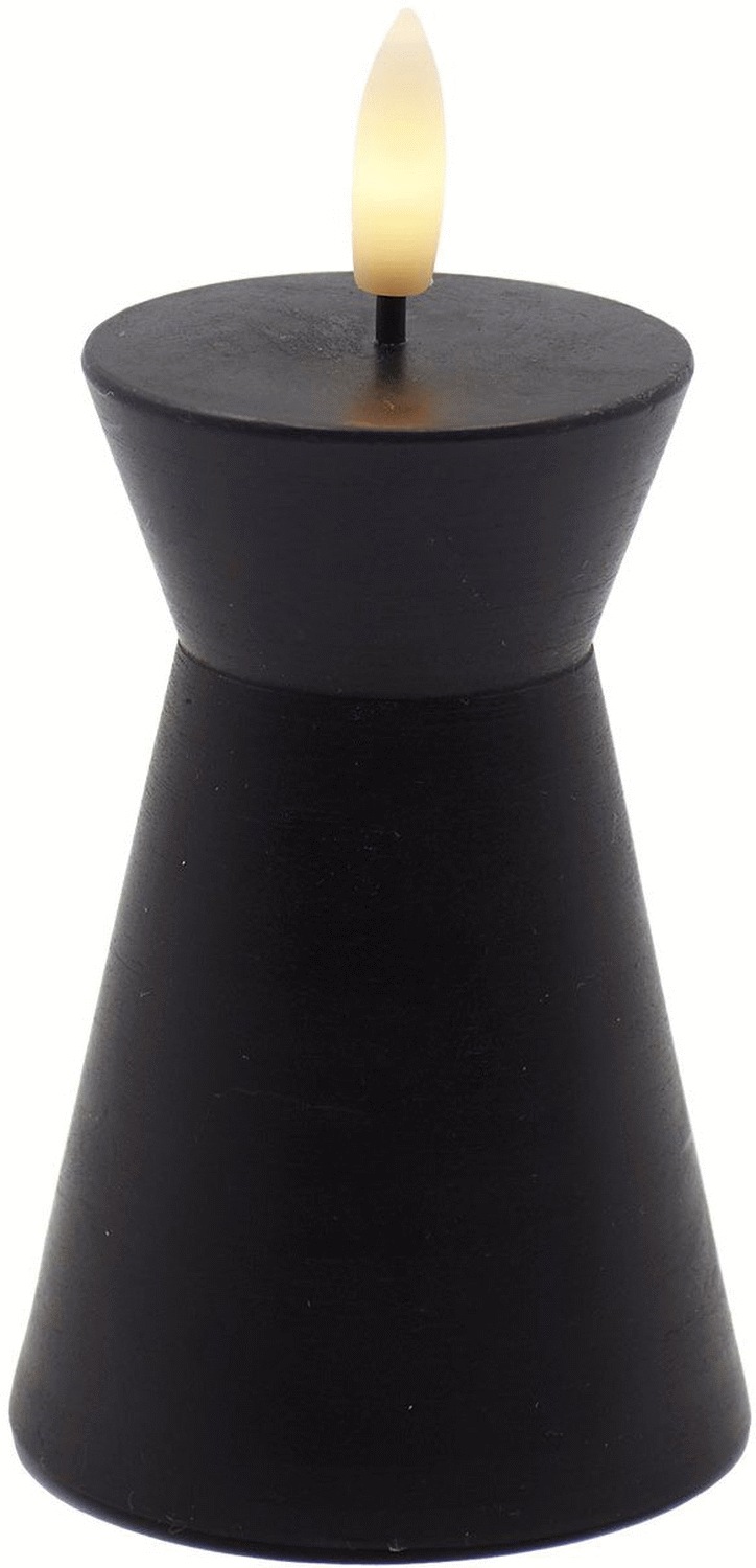 Mit der Sirius Sille Nordic Sculpture Stumpenkerze in Kegelform holst du dir ein außergewöhnliches Designobjekt ins Haus, das skandinavische Formensprache mit modernster LED-Technologie vereint. Diese skulpturale Kerze in elegantem Schwarz verwandelt jeden Raum in eine Wohlfühloase – ganz ohne Ruß, Rauch oder Brandgefahr. Perfekt für alle, die echte Gemütlichkeit lieben, aber auf Sicherheit und Komfort nicht verzichten möchten.Die charakteristische Kegelform und die matte Oberfläche aus echtem Wachs verleihen dieser LED-Kerze einen natürlichen, hochwertigen Look. Anders als herkömmliche Kunststoffkerzen strahlt sie dank des Materials eine besondere Authentizität aus. Das Licht wird sanft reflektiert und erzeugt eine warme, einladende Atmosphäre, die zum Verweilen einlädt. Mit einer Höhe von 10 cm und einem Durchmesser von 6,7 cm passt sie problemlos auf Fensterbänke, Regale oder festlich gedeckte Tische, ohne zu viel Platz einzunehmen.