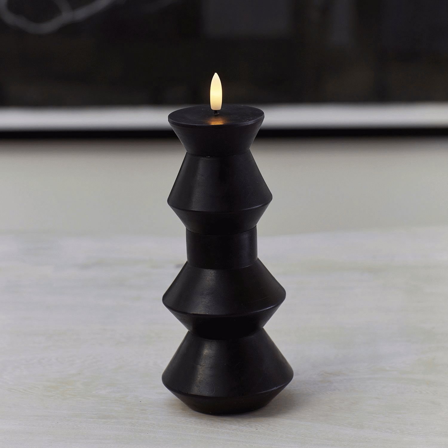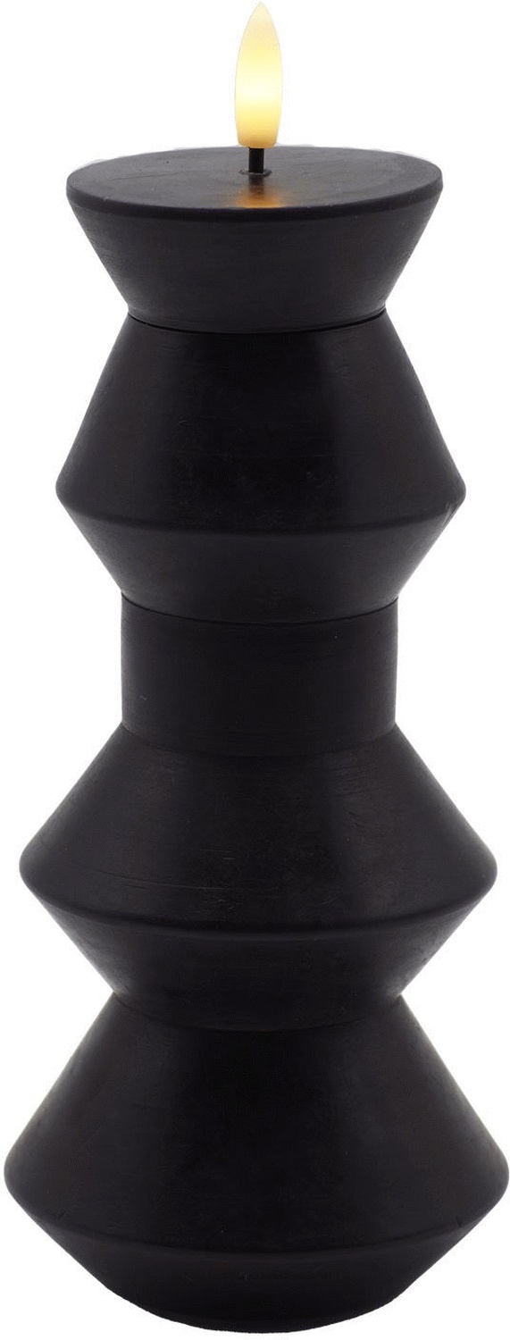 Gefertigt aus echtem Stearin, strahlt diese LED-Kerze eine authentische und exklusive Anmutung aus, die an traditionelle Wachskerzen erinnert. Die matte schwarze Oberfläche unterstreicht die skandinavische Ästhetik und macht die Sille Nordic Sculpture zu einem zeitlosen Designobjekt, das sich mühelos in verschiedene Einrichtungsstile einfügt – von minimalistisch bis klassisch. Ihre geometrische Silhouette sorgt für Tiefe und Kontrast und schafft ein harmonisches Zusammenspiel zwischen Licht und Design.