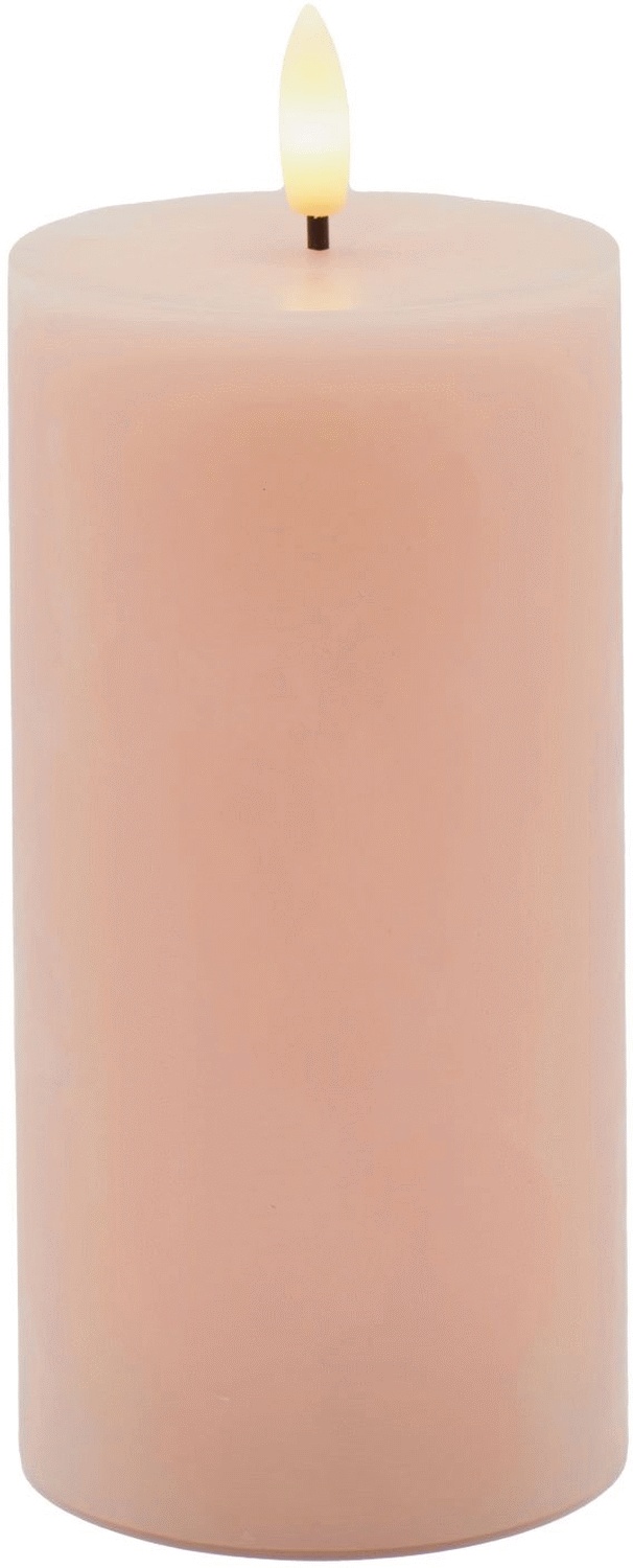 Die innovative 3D-Flamme erzeugt einen lebensechten Flackereffekt, der sanft auf- und abtönt und dir eine realistische Kerzenerfahrung bietet. Diese LED-Technologie gibt keine Partikel ab, was sie zu einer deutlich besseren Wahl für dein Raumklima und die Luftqualität in deinem Zuhause macht. Die zarte Dusty-Peach-Farbe verleiht deiner Einrichtung eine weiche, warme Note und fügt sich harmonisch in moderne wie klassische Wohnstile ein.