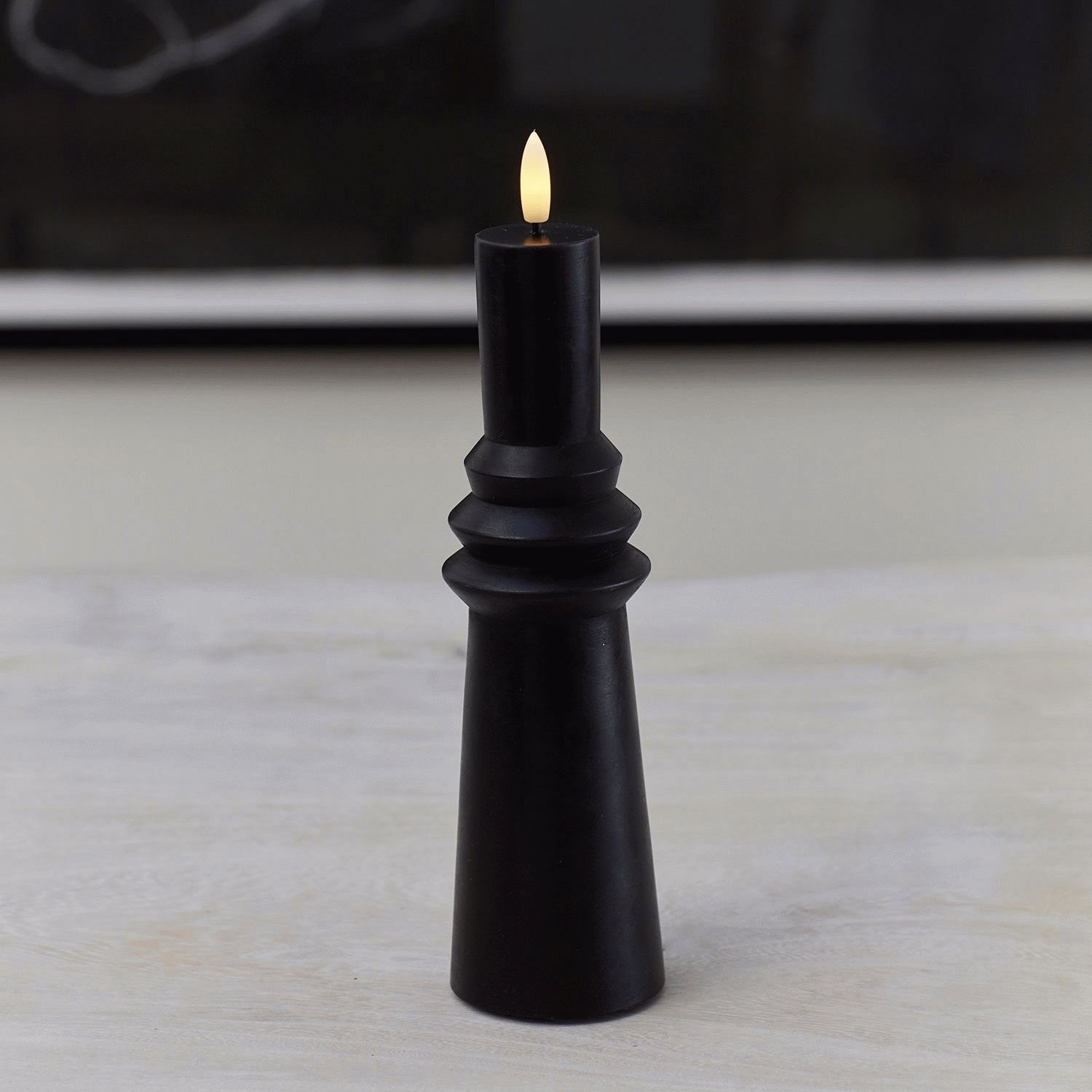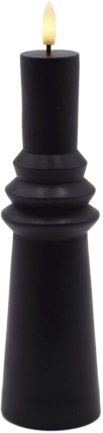 Diese beeindruckende LED-Stumpenkerze aus der Sirius Sille Nordic Sculpture Kollektion vereint skulpturale Eleganz mit der gemütlichen Atmosphäre traditioneller Kerzen und setzt dabei auf modernste LED-Technologie. Die markante geringelte Struktur verleiht diesem Lichtobjekt eine außergewöhnliche Textur, die es zu einer kleinen Skulptur für dein Zuhause macht – ein Blickfang, der sowohl bei Tageslicht als auch am Abend seine Wirkung entfaltet.Gefertigt aus echtem Wachs mit matter Oberfläche, vermittelt diese Stumpenkerze ein authentisches und hochwertiges Erscheinungsbild, das sich nahtlos in skandinavische und minimalistische Einrichtungsstile einfügt. Die elegante schwarze Ausführung verleiht dem Produkt eine moderne Sophistication, die perfekt zu zeitgemäßen Wohnkonzepten passt. Mit einer Höhe von 21,7 cm und einem Durchmesser von 6,1 cm besitzt diese Kerze eine Präsenz, die sie ideal für Fensterbänke, Regale oder Esstische macht.