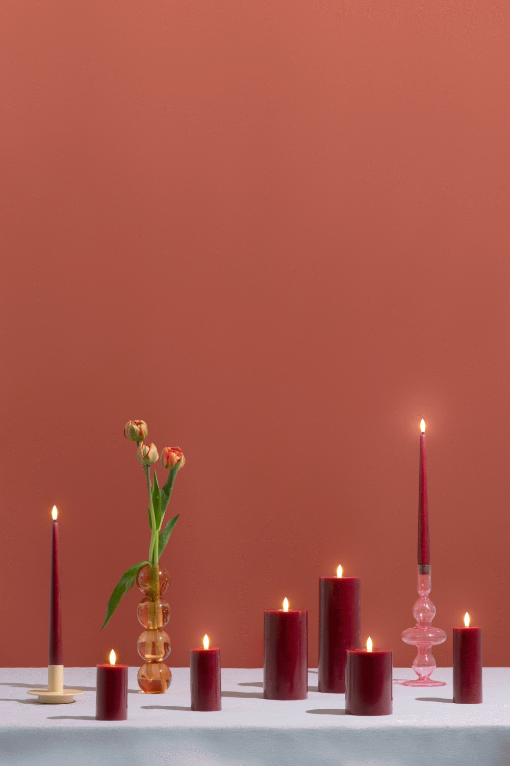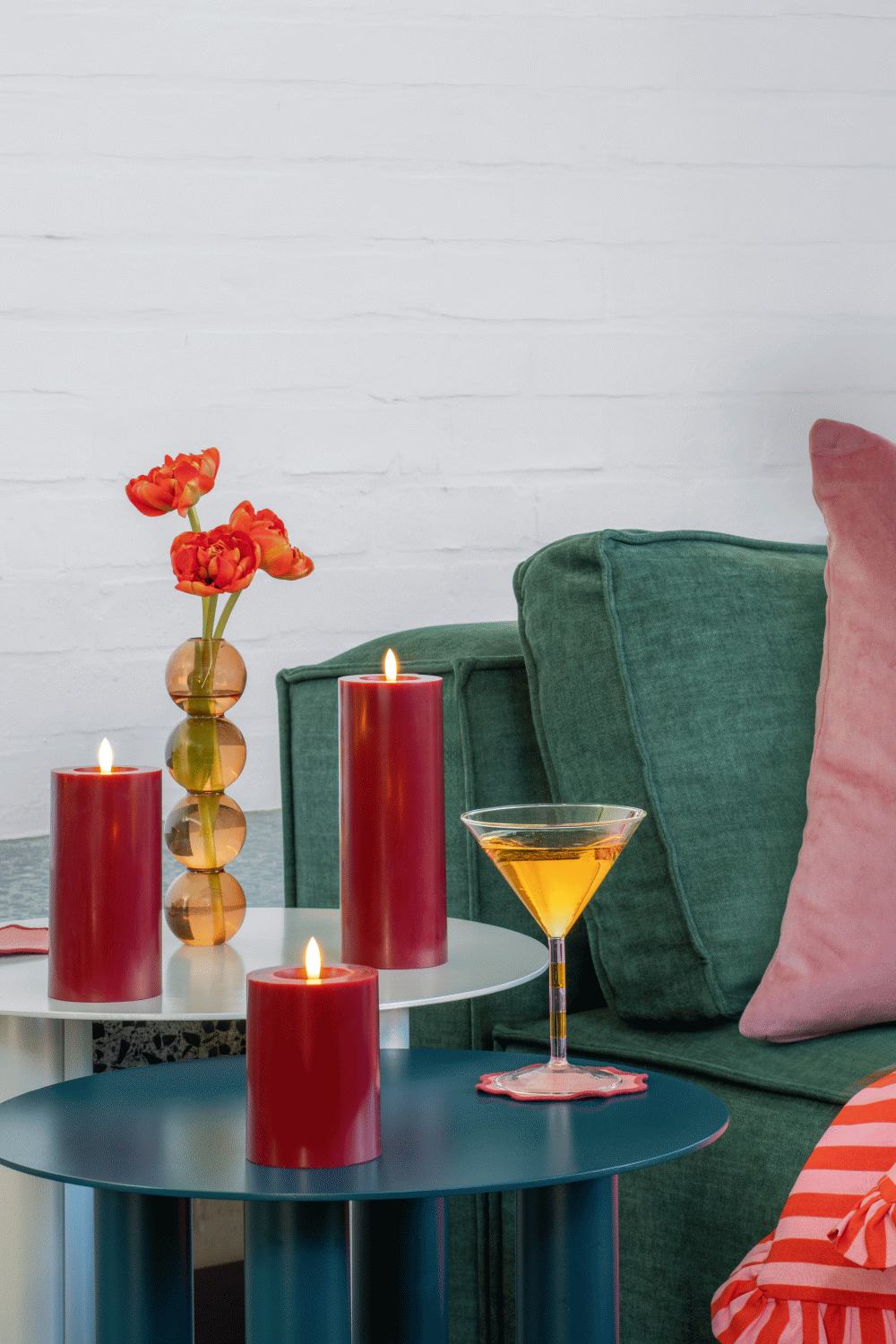Moods & More Stumpenkerze mit Schmelzeffekt LED Ø7,4xH10 cm, Cranberry Red
