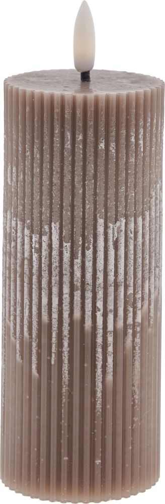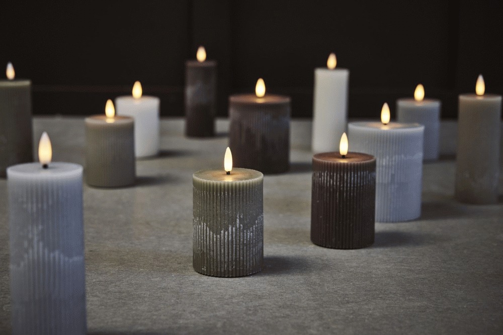 Die raffinierte geriffelte Oberfläche verleiht dieser kompakten Kerze eine sophisticated Ausstrahlung, die sowohl in klassische als auch in zeitgenössische Einrichtungsstile harmonisch integriert. Mit ihren Maßen von Ø6xH15 cm findet sie überall ihren perfekten Platz – ob auf dem Esstisch, der Fensterbank oder als stimmungsvoller Akzent im Wohnbereich.