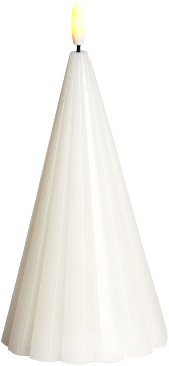 Der Laura Weihnachtsbaum besticht durch sein zeitloses Design aus weißem Wachs und fügt sich perfekt in den skandinavischen Einrichtungsstil ein. Mit seinen kompakten Maßen von 17 cm Höhe und 9,5 cm Durchmesser passt er sowohl in große als auch kleine Räume und wird zum stimmungsvollen Blickfang in deiner Winterdekoration. Die sanft flackernde LED-Flamme imitiert echtes Kerzenlicht und verleiht deinem Zuhause eine authentische Atmosphäre – ganz ohne die Risiken offener Flammen.