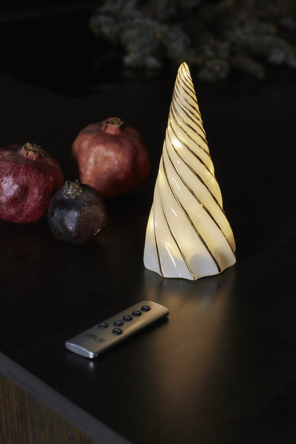 Mit diesem bezaubernden Weihnachtsbaum aus mundgeblasenem Glas holst du dir echte Weihnachtsmagie ins Zuhause. Die raffinierte Kombination aus weißem Glas und handgemalten Golddetails verkörpert die Essenz skandinavischer Weihnachtstradition und schafft eine warme, einladende Atmosphäre in jedem Raum.Das elegante, geschwungene Glasdesign lässt das LED-Licht sanft und harmonisch erstrahlen, wodurch die perfekte Stimmung für gemütliche Weihnachtsmomente entsteht. Die liebevoll handgemalten Goldstreifen verleihen jedem Baum einen luxuriösen Touch und machen jede Lichtdekoration zu einem einzigartigen Kunstwerk. Die Qualität des mundgeblasenen Glases garantiert nicht nur Langlebigkeit, sondern auch eine authentische handwerkliche Verarbeitung, die du sofort spürst.