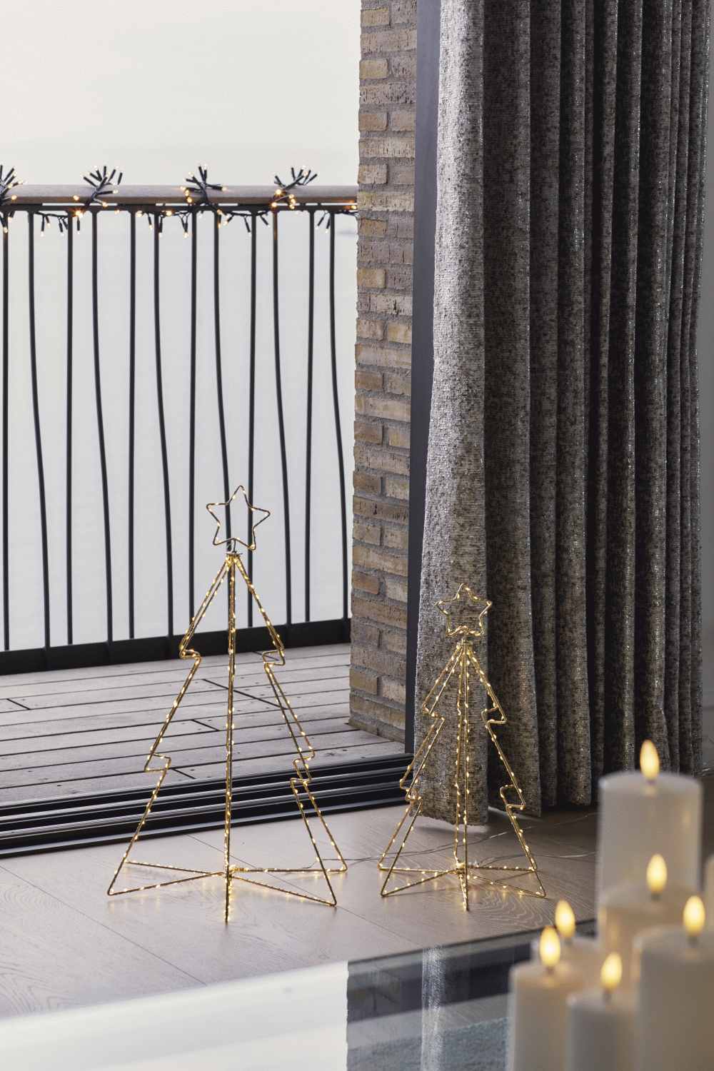 Mit diesem bezaubernden LED-Weihnachtsbaum von Sirius holst du dir skandinavische Eleganz und festliche Beleuchtung in dein Zuhause. Die Esther Serie verkörpert minimalistisches Design in seiner schönsten Form – eine filigrane Drahtstruktur, die mit 220 gleichmäßig verteilten LED-Lichtern zum Leben erweckt wird und dabei eine magische Atmosphäre schafft.