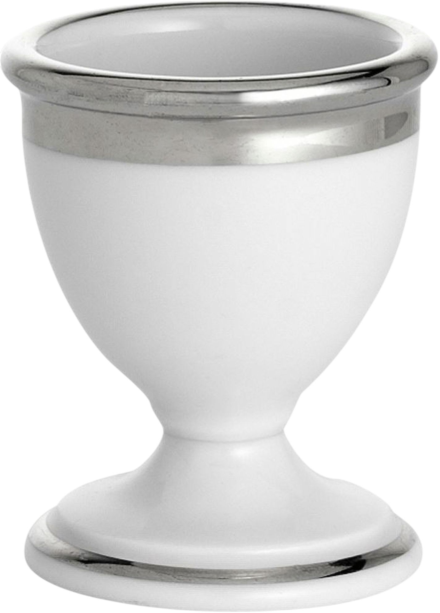 Das klassische weiße Porzellan besticht durch seine reine, zeitlose Ausstrahlung, während der raffinierte Silberrand einen sophistizierten Akzent setzt, der selbst das einfachste Frühstück zu einem besonderen Erlebnis macht. Ursprünglich für die Tische traditioneller französischer Bistros und Restaurants entworfen, vereint dieser Eierbecher Funktionalität mit einem eleganten Ausdruck, der den Test der Zeit bestanden hat.