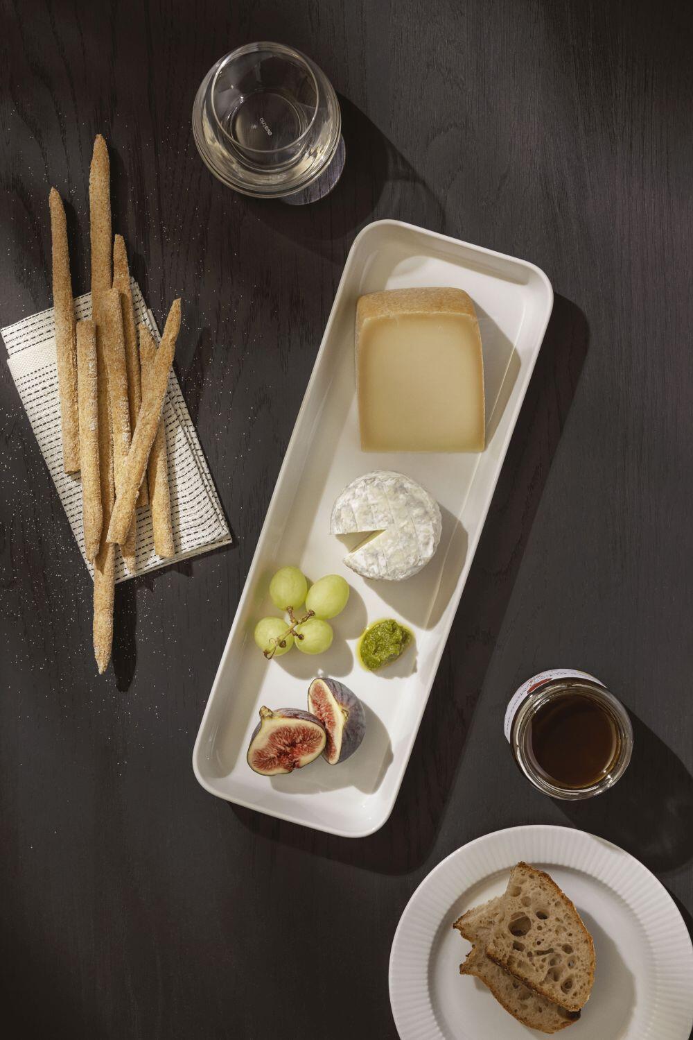Die schlanke, längliche Form macht diese Platte ideal für die Präsentation von allem - vom ganzen gebratenen Fisch bis hin zu kunstvoll arrangierten Gemüsegerichten, bei denen das Essen die Aufmerksamkeit bekommt, die es verdient. Das charakteristische Merkmal der Legio Nova Serie sind die dezenten, markanten Rillen, die entlang der Kante verlaufen - ein Designelement, das sowohl visuelles Interesse weckt als auch Eva Trios Gespür für raffinierte Details unterstreicht.