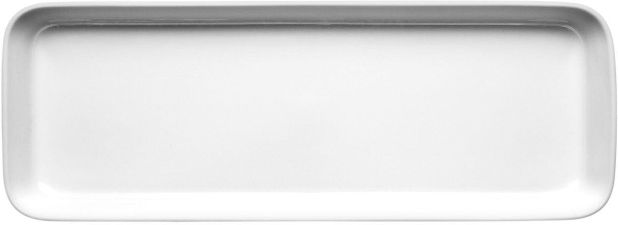 Mit diesem exquisiten Servierplatte aus der Legio Nova Serie holst du dir ein wahres Designhighlight für deinen Esstisch ins Haus. Die 37 cm lange Servierplatte aus weißem Porzellan vereint zeitlose Eleganz mit praktischer Funktionalität und bringt einen Hauch skandinavischer Designtradition in jede Tischpräsentation.Die schlanke, längliche Form macht diese Platte ideal für die Präsentation von allem - vom ganzen gebratenen Fisch bis hin zu kunstvoll arrangierten Gemüsegerichten, bei denen das Essen die Aufmerksamkeit bekommt, die es verdient. Das charakteristische Merkmal der Legio Nova Serie sind die dezenten, markanten Rillen, die entlang der Kante verlaufen - ein Designelement, das sowohl visuelles Interesse weckt als auch Eva Trios Gespür für raffinierte Details unterstreicht.