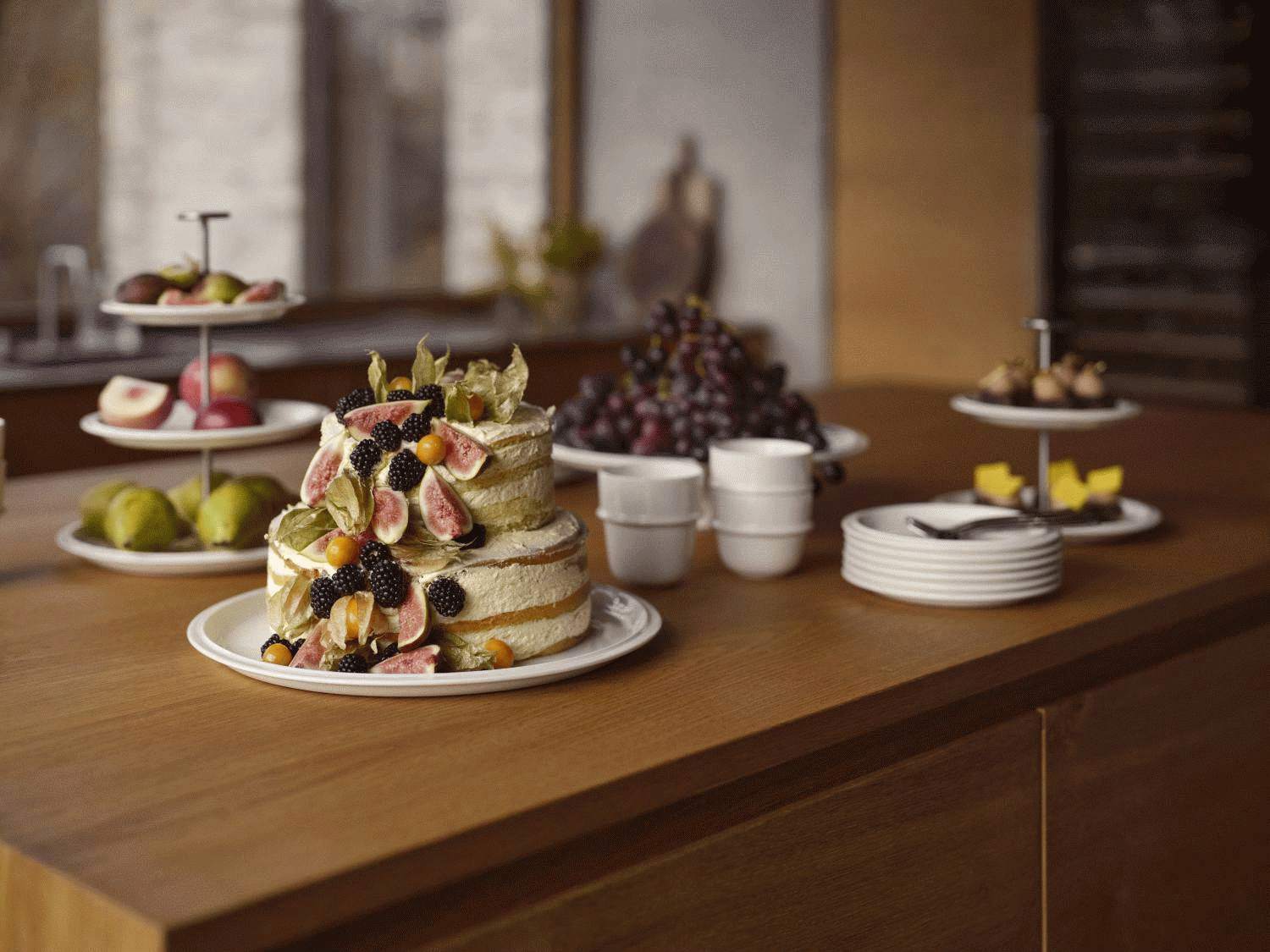 Die großzügige Oberfläche bietet dir perfekten Raum für kreative Anrichtungen – von Torten und Tapas bis hin zu frischen Früchten und delikatessen Käsevariationen. Die neutrale Farbgebung schafft eine harmonische Grundlage, die die natürlichen Farben und Texturen deiner Speisen wunderbar zur Geltung bringt. Gleichzeitig verleiht die puristische Form deinen Zusammenkünften einen Hauch skandinavischer Raffinesse.
