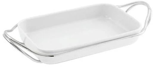 - Rechteckige Porzellanplatte mit Halter aus spiegelpoliertem Edelstahl
