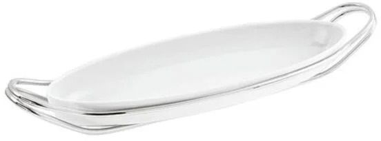 - Elegante Fischplatte aus weißem Porzellan mit Halter aus Edelstahl