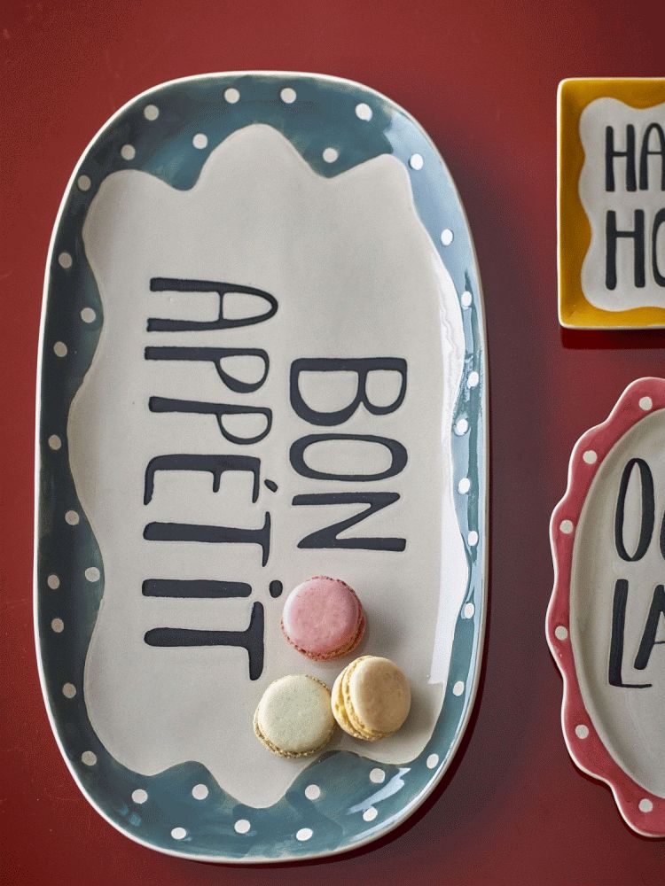 Mit dieser handbemalten Servierplatte aus Steinzeug bringst du künstlerisches Handwerk und praktische Funktionalität auf deinen Tisch. Die Soline Servierplatte von Bloomingville verwandelt jede Mahlzeit in ein besonderes Erlebnis durch ihre individuellen Details und den charmanten Schriftzug "Bon Appétit", der elegant in der Mitte platziert ist und zu gemütlichen Momenten am Esstisch einlädt.Das skandinavische Design zeichnet sich durch weiche, organische Linien und verspielte Punktdetails entlang der Kante aus. Diese sorgfältige Gestaltung schafft eine visuelle Balance zwischen klassischer Eleganz und modernem Ausdruck, wodurch die Servierplatte zu einem vielseitigen Accessoire in deiner Küche wird. Die natürlichen Farbtöne des mehrfarbigen Designs fügen sich harmonisch in die meisten Einrichtungsstile ein und lassen sich mühelos mit anderem Geschirr kombinieren.
