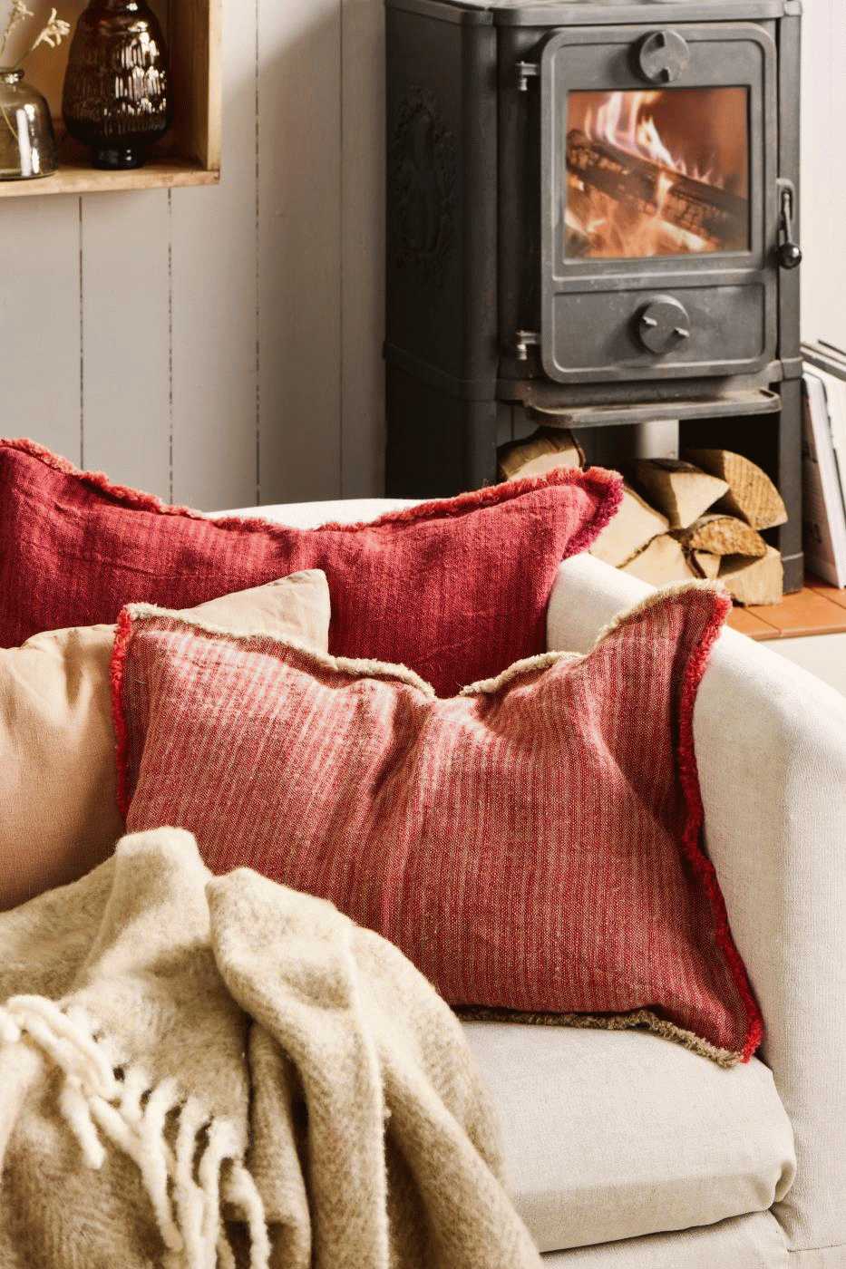 Die Kombination aus natürlichen und rostfarbenen Nuancen schafft eine warme, erdige Farbpalette, die sowohl mit neutralen als auch mit farbenfrohen Einrichtungsstilen harmoniert. Das aus 100% Leinen gefertigte Material überzeugt durch seine natürlichen Eigenschaften – es ist atmungsaktiv, wird mit der Zeit immer weicher und reguliert auf natürliche Weise die Temperatur.
