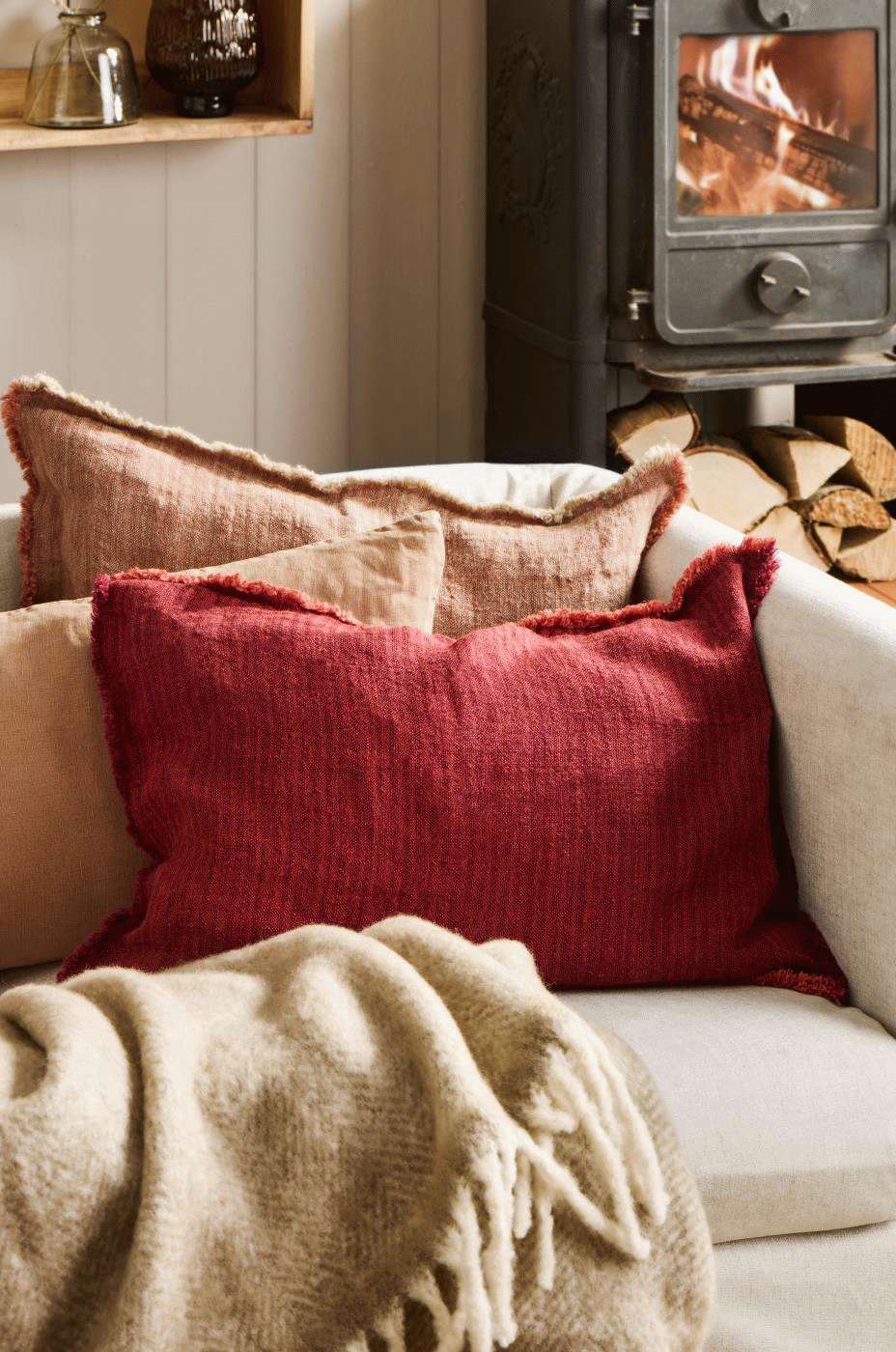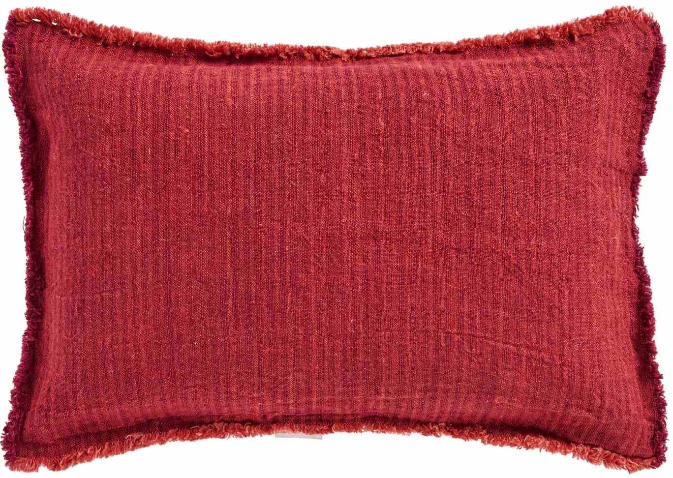 Mit diesem charakteristischen Kissenbezug von Ib Laursen holst du dir rustikale Eleganz und zeitlose skandinavische Ästhetik direkt in dein Zuhause. Die harmonische Farbkombination aus warmen Rost- und Bordeauxtönen in feinen Streifen verleiht jedem Raum eine sophisticated Tiefe und gemütliche Atmosphäre.Das handwerkliche Detail der Fransen an allen vier Seiten macht jeden Kissenbezug zu einem authentischen Unikat und unterstreicht die traditionelle Handwerkskunst, für die Ib Laursen bekannt ist. Diese durchdachten Designelemente schaffen einen lebendigen, organischen Look, der perfekt zur skandinavischen Philosophie von Natürlichkeit und Funktionalität passt.