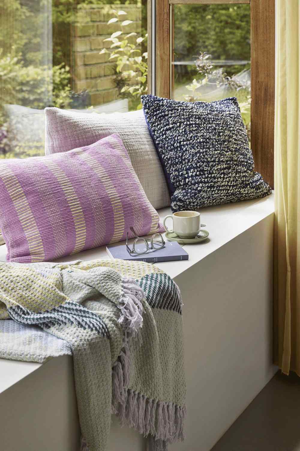 - Grafisch gewebtes Muster in Rosa und Gelb