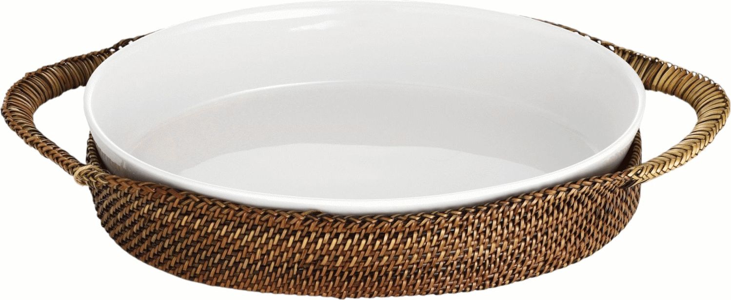 Mit diesem handgeflochtenen Korb von Pillivuyt verwandelst du deine Tischpräsentation in ein harmonisches Gesamtkunstwerk aus Funktionalität und skandinavischer Ästhetik. Die natürlichen hell- und dunkelbraunen Nuancen schaffen eine warme, rustikale Atmosphäre, die sowohl zu modernen als auch klassischen Einrichtungsstilen perfekt harmoniert.Der Korb wurde speziell für ovale Schalen mit den Maßen 26x19 cm entwickelt und bietet deinem Pillivuyt Serviergeschirr optimalen Halt und Schutz. Die traditionelle Flechttechnik verleiht dem Korb nicht nur sein authentisches Aussehen, sondern verbessert auch deutlich den Griff beim Transport. So kannst du selbst heiße Gerichte sicher und bequem vom Herd zum Esstisch tragen, ohne dir Sorgen um Verbrennungen oder rutschende Schalen machen zu müssen.