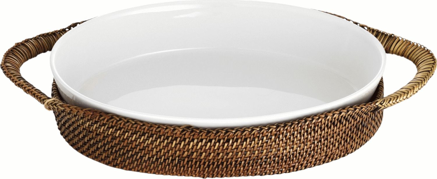 Mit seinen präzisen Maßen von 36x27 cm ist dieser Korb speziell für die ovalen Schalen von Pillivuyt konzipiert und fungiert als eleganter Untersetzer, der deinen Tisch vor heißen Schalen schützt. Die sorgfältige Handarbeit zeigt sich in jedem Detail des Flechtwerks und garantiert sowohl ästhetische Schönheit als auch langlebige Funktionalität.