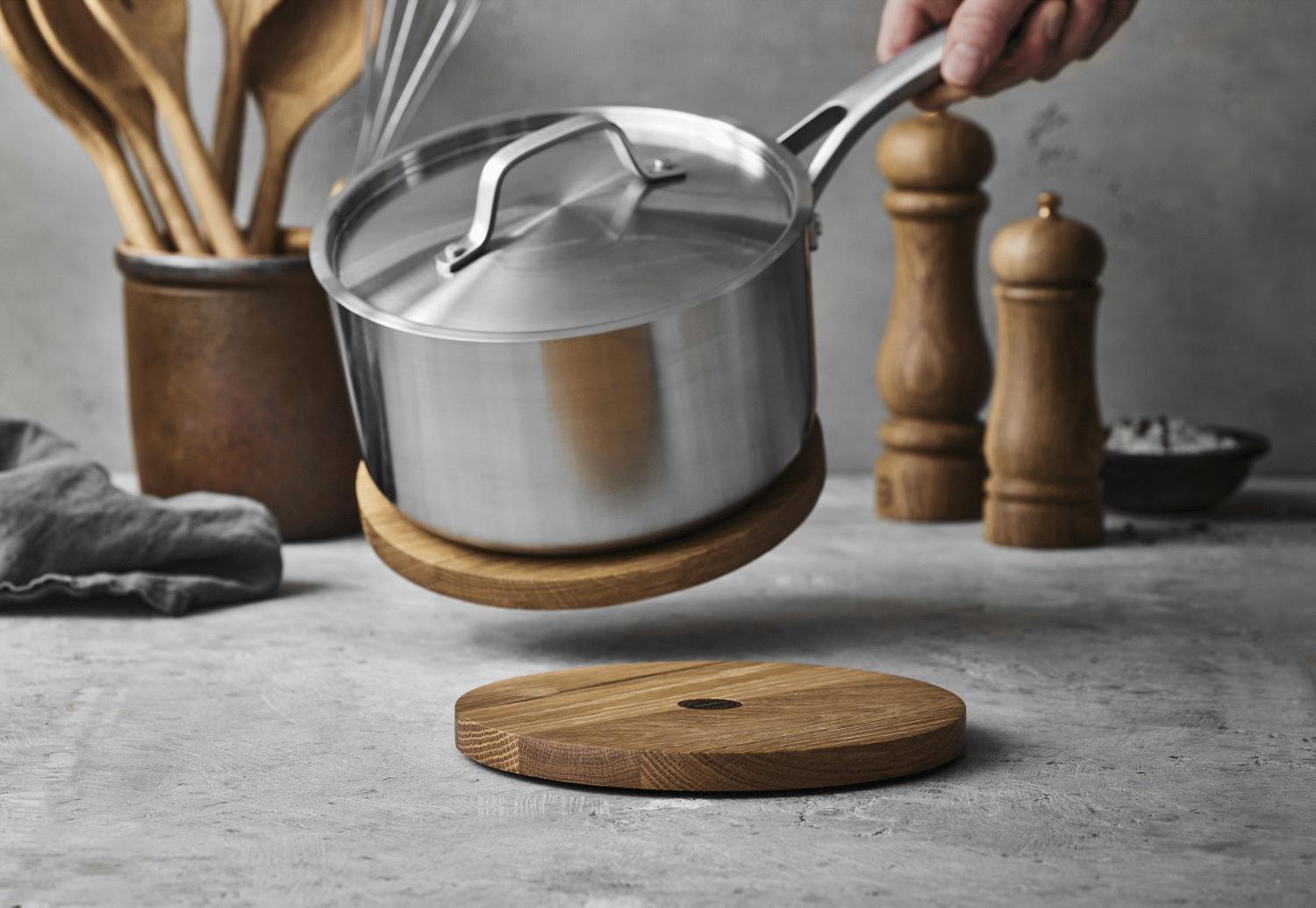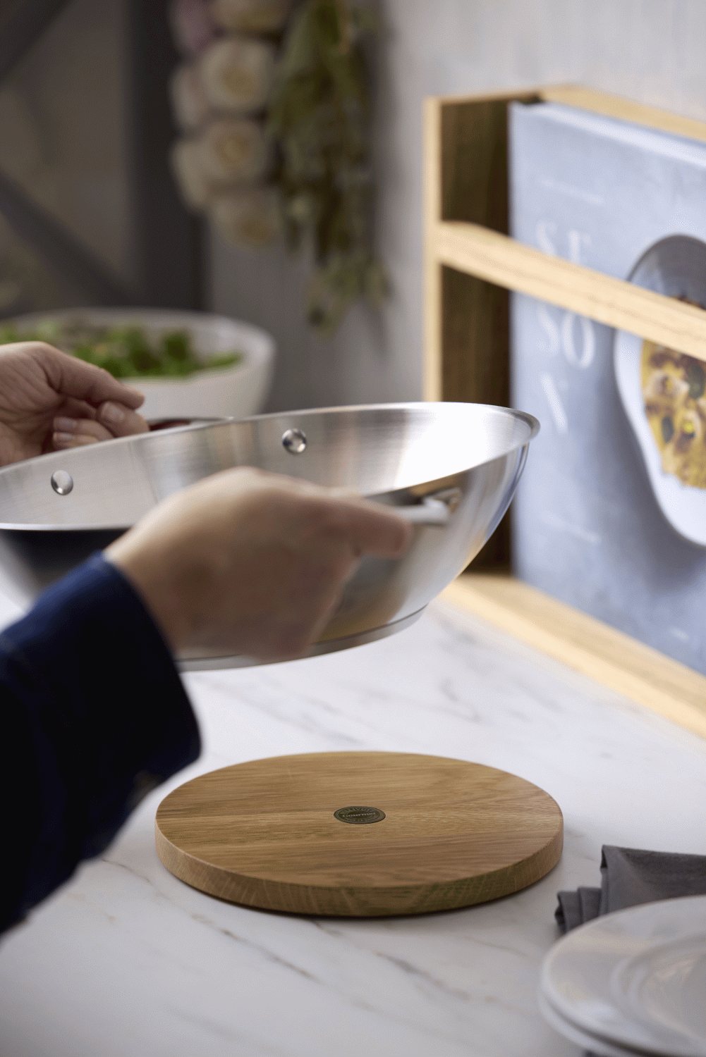 Mit diesem magnetischen Untersetzer aus der Pillivuyt Gourmet Douron-Serie holst du dir ein durchdachtes Küchenhelfer-Highlight ins Haus, das praktische Funktionalität mit skandinavischer Eleganz verbindet. Das FSC-zertifizierte Eichenholz schützt nicht nur deine Tischoberflächen vor heißen Töpfen und Pfannen, sondern überzeugt auch durch sein innovatives magnetisches System.Das Geniale an diesem Untersetzer sind die integrierten Magnete, die dafür sorgen, dass er automatisch an deinen Kochgeschirr haftet. Wenn du einen heißen Topf oder eine Pfanne vom Herd nimmst, folgt der Untersetzer einfach mit – so landest du nie wieder mit heißem Kochgeschirr direkt auf dem Tisch. Diese clevere Lösung macht das Kochen sicherer und komfortabler, während sie gleichzeitig deine wertvollen Oberflächen schützt.