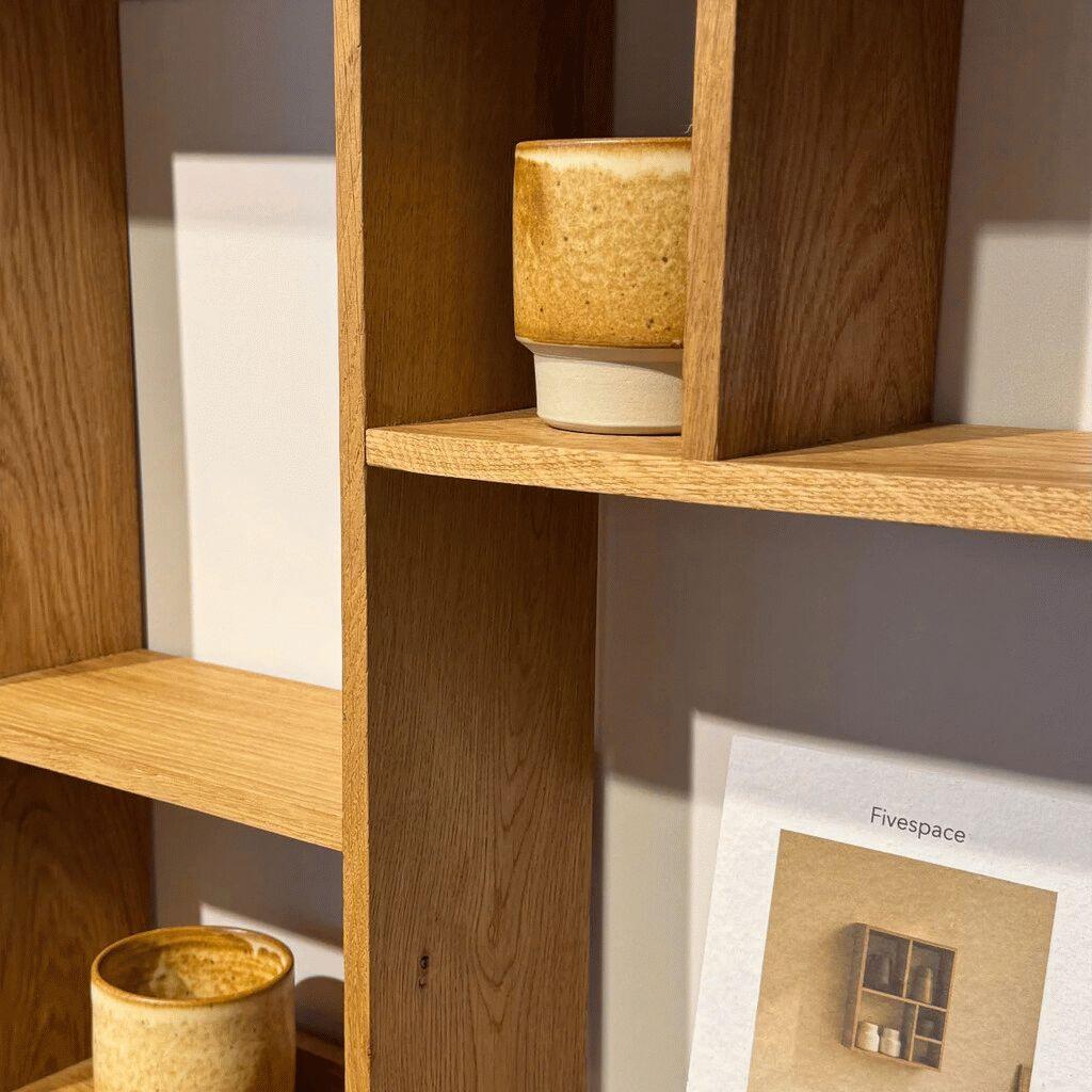 Das Regal ist aus FSC Mix 70% Eiche gefertigt, was Rückverfolgbarkeit und verantwortungsvollen Umgang mit Holzressourcen gewährleistet. Das Eichenholz verleiht dem Möbel einen warmen und natürlichen Charakter mit sichtbarer Struktur und hellen Nuancen, die sich wunderbar in skandinavische Interieurs einfügen. Das robuste Material garantiert eine lange Lebensdauer, sodass dieses Regal über viele Jahre hinweg Teil deines Zuhauses sein kann.