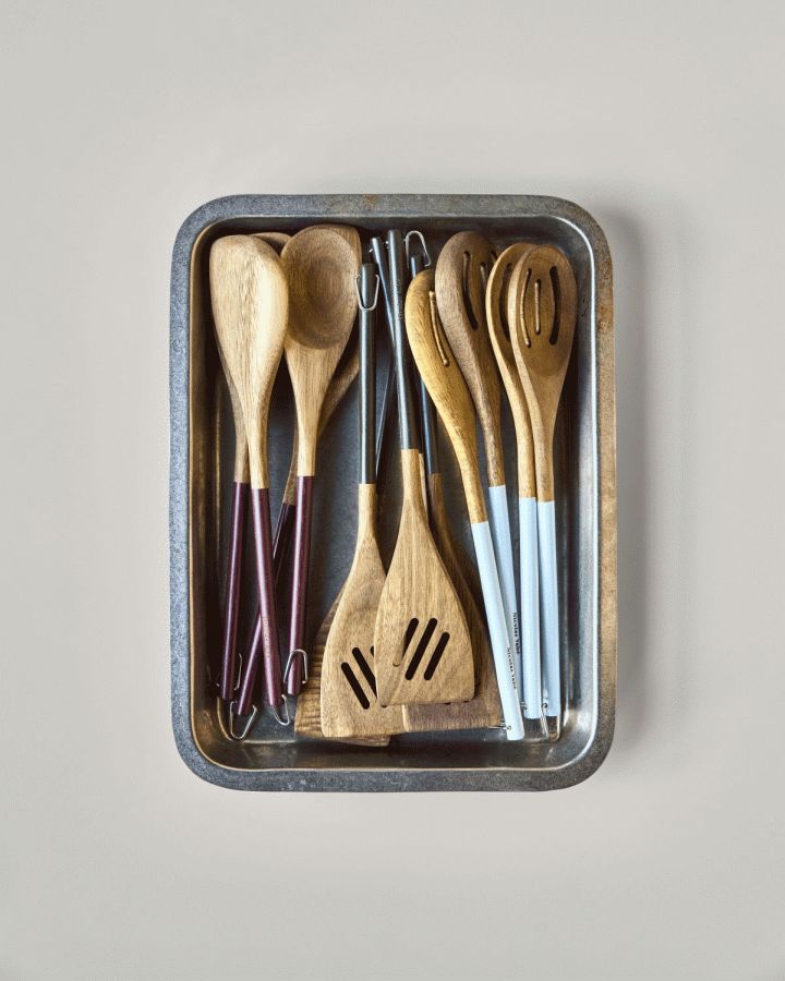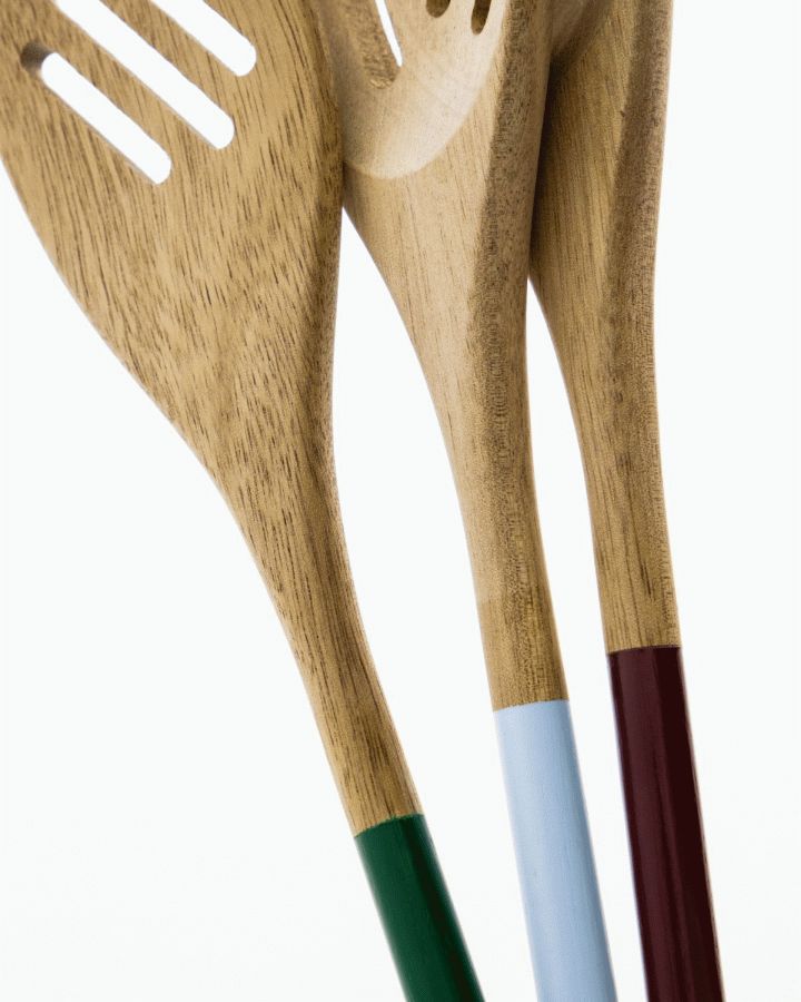 Die farbigen Griffe bringen Leben in deine Küche und erleichtern es dir, zwischen den verschiedenen Löffeln zu unterscheiden, wenn du sie brauchst. Jeder Löffel ist mit einer praktischen Aufhängeschlaufe ausgestattet, sodass du sie an der Küchenwand oder in der Nähe des Herdes aufhängen kannst. Das ermöglicht dir schnellen Zugriff beim Kochen und hält gleichzeitig deine Arbeitsfläche ordentlich. Das Set vereint Funktionalität mit einem einladenden Design, das sowohl zu modernen als auch zu klassischen Küchen passt. Nicolas Vahé ist bekannt dafür, Küchenutensilien zu schaffen, die Qualität mit durchdachtem Design verbinden. Dieses Kochlöffel-Set ist ein hervorragendes Beispiel für die Fähigkeit der Marke, Produkte zu liefern, die nicht nur gut aussehen, sondern auch im Alltag optimal funktionieren. Die skandinavische Handwerkskunst und die nachhaltige Wahl des Materials machen diese Löffel zu einer Bereicherung für jede Küche, die Wert auf Qualität und Ästhetik legt.