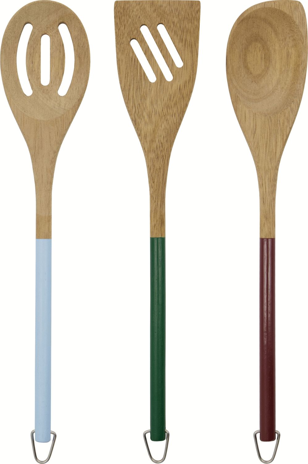 Mit diesem praktischen Kochgeschirr-Set von Nicolas Vahé holst du dir drei funktionale Küchenhelfer aus natürlichem Akazienholz mit farbenfrohen Griffen in Rot, Blau und Grün direkt in deine Küche. Die Löffel sind so gestaltet, dass sie das Kochen sowohl einfacher als auch inspirierender machen – egal, ob du ein schnelles Alltagsgericht zubereitest oder ein festliches Menü zauberst. Die drei Löffel eignen sich hervorragend zum Rühren im Topf, zum Vermischen von Zutaten und zum Servieren fertiger Gerichte direkt am Tisch. Das Akazienholz verleiht den Löffeln eine robuste und langlebige Konstruktion, die dem täglichen Einsatz in deiner Küche mühelos standhält. Die natürlichen Eigenschaften des Holzes sorgen dafür, dass die Küchenhelfer schonend zu deinen Töpfen und Pfannen sind, sodass du Kratzer auf den Oberflächen vermeidest.Die farbigen Griffe bringen Leben in deine Küche und erleichtern es dir, zwischen den verschiedenen Löffeln zu unterscheiden, wenn du sie brauchst. Jeder Löffel ist mit einer praktischen Aufhängeschlaufe ausgestattet, sodass du sie an der Küchenwand oder in der Nähe des Herdes aufhängen kannst. Das ermöglicht dir schnellen Zugriff beim Kochen und hält gleichzeitig deine Arbeitsfläche ordentlich. Das Set vereint Funktionalität mit einem einladenden Design, das sowohl zu modernen als auch zu klassischen Küchen passt. Nicolas Vahé ist bekannt dafür, Küchenutensilien zu schaffen, die Qualität mit durchdachtem Design verbinden. Dieses Kochlöffel-Set ist ein hervorragendes Beispiel für die Fähigkeit der Marke, Produkte zu liefern, die nicht nur gut aussehen, sondern auch im Alltag optimal funktionieren. Die skandinavische Handwerkskunst und die nachhaltige Wahl des Materials machen diese Löffel zu einer Bereicherung für jede Küche, die Wert auf Qualität und Ästhetik legt.