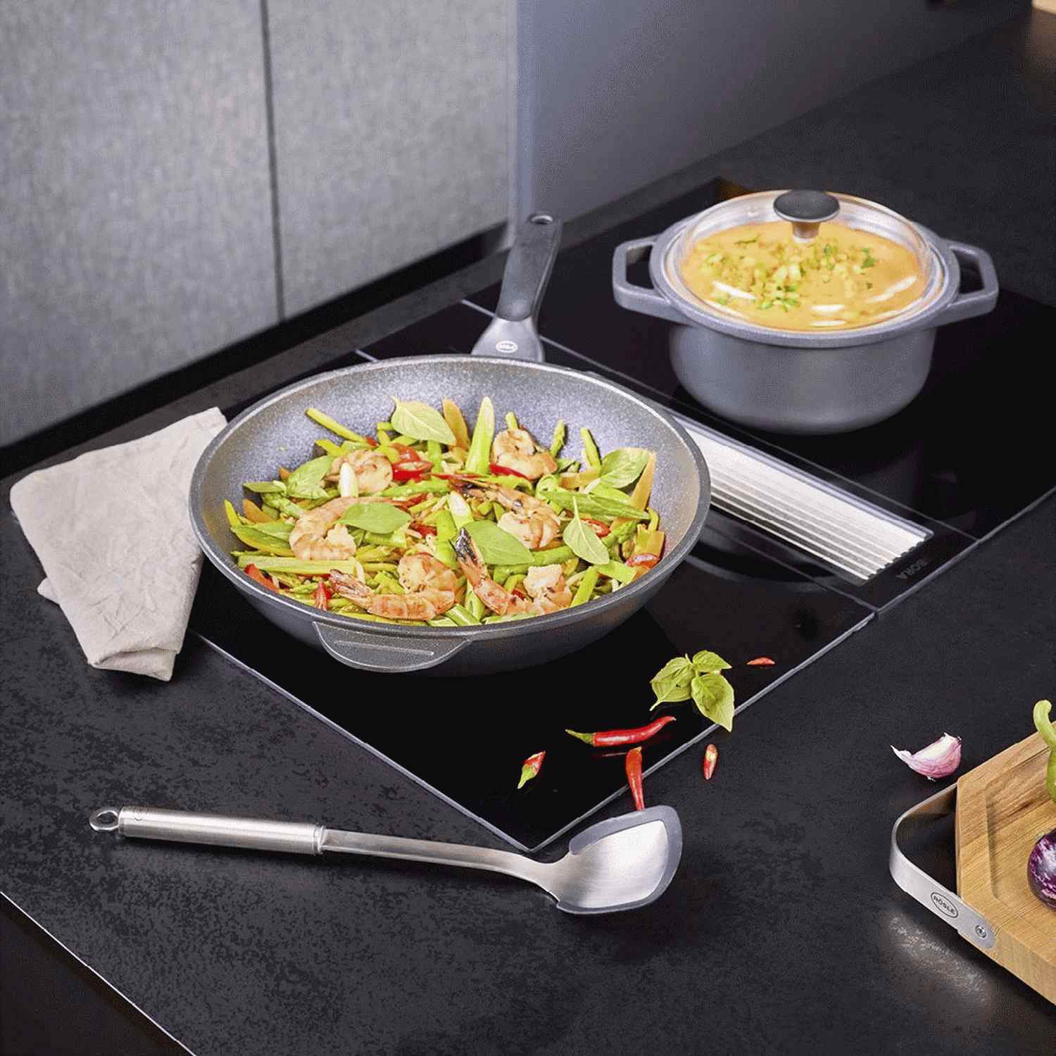Das Produkt wurde mit größter Sorgfalt gefertigt, um die optimale Balance zwischen Stärke und Schonung zu gewährleisten. Während er perfekt für Wokpfannen konzipiert ist, eignet er sich ebenso hervorragend für herkömmliche Töpfe und Pfannen aller Art. Die ergonomische Gestaltung sorgt für komfortable Handhabung auch bei längeren Kochsessions.