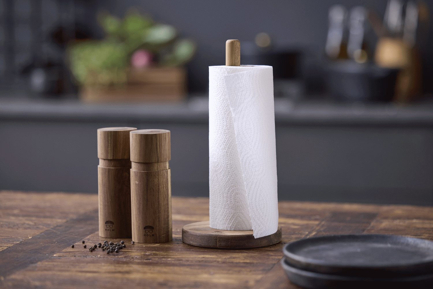 Mit diesem HOLM Küchenrollenhalter aus Akazienholz holst du dir natürliche Eleganz und rustikalen Charme direkt in dein Zuhause. Das 28 cm hohe Modell vereint skandinavische Designphilosophie mit praktischer Funktionalität und wird zu einem echten Blickfang auf deiner Küchenarbeitsplatte.Das hochwertige Akazienholz mit FSC 100% Zertifizierung garantiert dir nachhaltige Herkunft aus verantwortungsvoll bewirtschafteten Wäldern. Besonders beeindruckend ist das charakteristische Fischgrätenmuster im Fuß, das der natürlichen Maserung des Holzes einen einzigartigen Ausdruck verleiht und die warmen Nuancen des Akazienholzes wunderschön zur Geltung bringt.