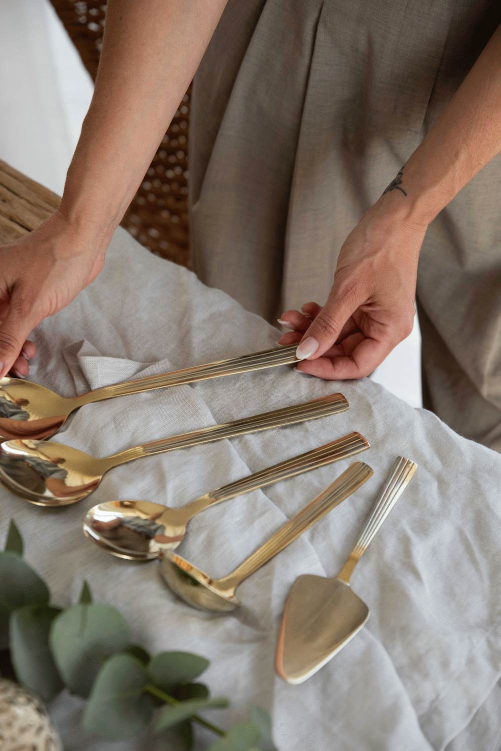 Das Servierset von RAW ist ideal für alle, die Qualität und Design in der Küche schätzen. Ob du ein intimes Abendessen oder eine größere Feier planst – dieses Set hilft dir dabei, eine professionelle und stilvolle Präsentation deiner Gerichte zu schaffen. Der neutrale Champagner Gold-Ton lässt sich mühelos mit vorhandenem Geschirr und Küchenausstattung kombinieren.