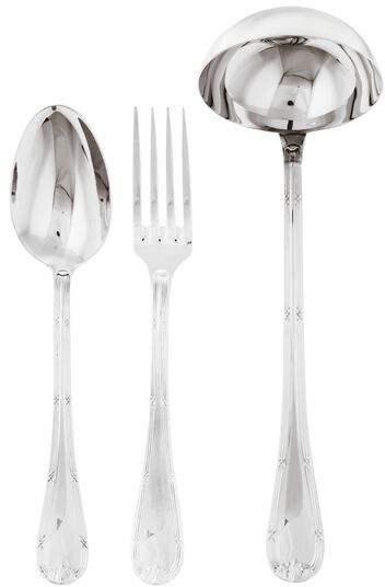• Dreiteiliges Servierbesteck: Servierlöffel, Serviergabel und Schöpflöffel