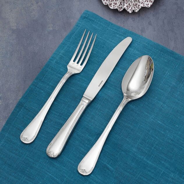Die Ruban Croisé-Kollektion von Sambonet verkörpert klassischen Stil mit einem Hauch skandinavischer Handwerkskunst. Jedes Stück ist darauf ausgelegt, dir über viele Jahre hinweg Freude zu bereiten – vorausgesetzt, du pflegst es entsprechend. Wasche das Besteck nach jedem Gebrauch in warmem Wasser mit neutralem Spülmittel und trockne es gründlich ab. Vermeide chlorhaltige oder stark alkalische Reinigungsmittel. Entferne Speisereste, insbesondere Salz, Zitrone, Essig und Tomaten, sorgfältig, um Korrosion vorzubeugen.