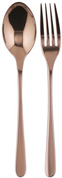 Mit diesem Serverbesteck-Set von Sambonet holst du dir skandinavisches Raffinement und zeitlose Eleganz direkt auf deinen Esstisch. Das zweiteilige Set in warmem Kupferton vereint ansprechendes Design mit durchdachter Funktionalität und macht jede Mahlzeit zu einem besonderen Erlebnis. Die charakteristische Kupferfarbe entsteht durch eine hochmoderne PVD-Beschichtung (Physical Vapour Deposition), die dem rostfreien Stahl nicht nur seine edle Optik verleiht, sondern auch außergewöhnliche Langlebigkeit garantiert.Bei der PVD-Technologie werden metallische Partikel durch Verdampfung in einer Vakuumkammer auf atomarer Ebene mit dem Edelstahl verschweißt. Dieses fortschrittliche Verfahren sorgt für eine Oberfläche mit deutlich höherer Härte und Widerstandsfähigkeit gegen Abrieb und Korrosion. Rost oder Oxidbildung gehören damit der Vergangenheit an. Besonders bemerkenswert: Die PVD-Beschichtung nutzt ausschließlich nicht-toxische Materialien wie Titan und Zirkonium, die sogar für biomedizinische Anwendungen zugelassen sind – ein klares Zeichen für höchste Qualitäts- und Sicherheitsstandards.