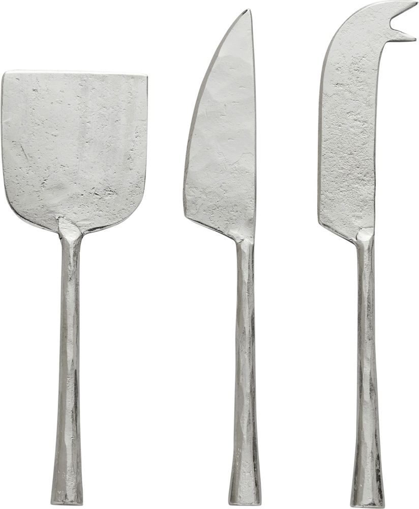 Mit diesem exquisiten Käsemesser-Set von Lene Bjerre holst du dir handwerkliche Tradition und moderne Funktionalität direkt an deinen Esstisch. Die drei Demilla Käsemesser verbinden skandinavische Designphilosophie mit praktischer Eleganz und verwandeln jede Käseplatte in ein stilvolles Highlight – ob für den gemütlichen Abend zu zweit oder die große Dinner-Party.Das charakteristische handgehämmerte Finish verleiht jedem Messer eine individuelle Note und macht dein Set zu einem echten Unikat. Die organischen Formen schaffen eine natürliche, einladende Ästhetik, die sowohl zu modernen als auch klassischen Tischdekorationen passt. Das robuste Eisen mit seinem raffinierten silbernen Finish überzeugt nicht nur optisch – die handgehämmerte Oberfläche bietet auch ein angenehmes haptisches Erlebnis beim Gebrauch.
