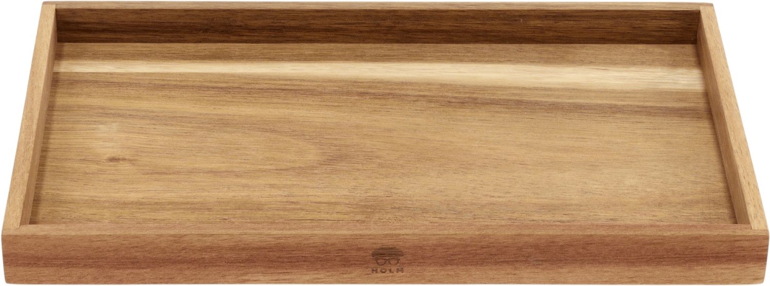 Mit diesem HOLM Tablett aus hochwertigem Akazienholz holst du dir ein Stück skandinavische Eleganz direkt in dein Zuhause. Das 35 cm lange Tablett vereint natürliche Schönheit mit durchdachter Funktionalität und wird durch die charakteristische Maserung des Akazienholzes zu einem echten Blickfang in deiner Küche oder deinem Wohnbereich.Die robuste Konstruktion und harmonischen Proportionen machen dieses Tablett zu einem vielseitigen Helfer im Alltag. In der Küche dient es als perfekter Organisator, auf dem du deine Lieblingszutaten übersichtlich zusammenstellst. Hochwertige Öle, Essige, Gewürze und frische Kräuter finden hier ihren Platz und sind beim Kochen immer griffbereit. Der dezente 3 cm hohe Rand sorgt dafür, dass nichts verrutscht oder herunterfällt, selbst wenn du das Tablett durch die Wohnung trägst.