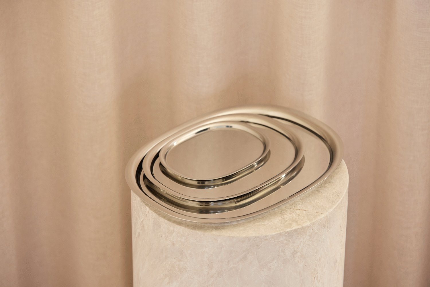 Die superelliptische Form vereint auf geniale Weise die Weichheit eines Kreises mit den praktischen Eigenschaften eines Rechtecks und schafft dadurch eine harmonische Balance zwischen Ästhetik und Funktionalität. Das gebürstete rostfreie Stahl verleiht den Tabletts einen modernen und zeitlosen Charakter, der sich perfekt in jede Wohneinrichtung einfügt. Die natürlichen Eigenschaften des Materials gewährleisten sowohl Langlebigkeit als auch einfache Pflege, während die matte Oberfläche eine raffinierte Eleganz in deine alltäglichen Rituale bringt.