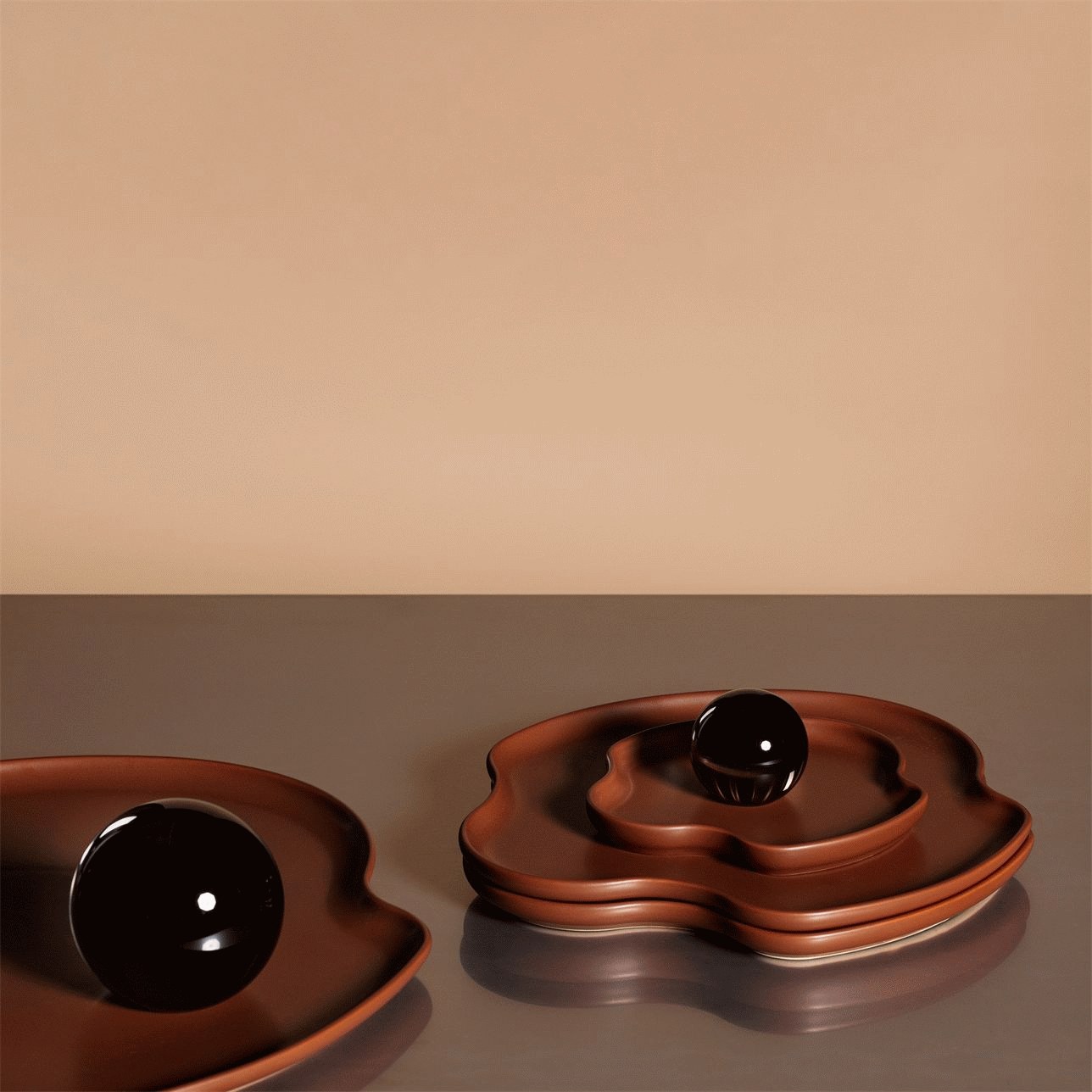 Gefertigt aus hochwertigem Steinzeug mit matter Glasur, betont die Platte die natürliche Beschaffenheit des Materials und erhält eine angenehme, haptische Oberfläche. Die großzügigen Proportionen machen sie zu einem vielseitigen Begleiter im Alltag – ob als Servierplatte für Brot, Obst oder Snacks bei Tisch oder als dekoratives Element auf der Kommode oder dem Couchtisch. Dank ihrer architektonischen Ausstrahlung funktioniert die Platte ebenso gut als eigenständiges skulpturales Detail wie im praktischen Einsatz.