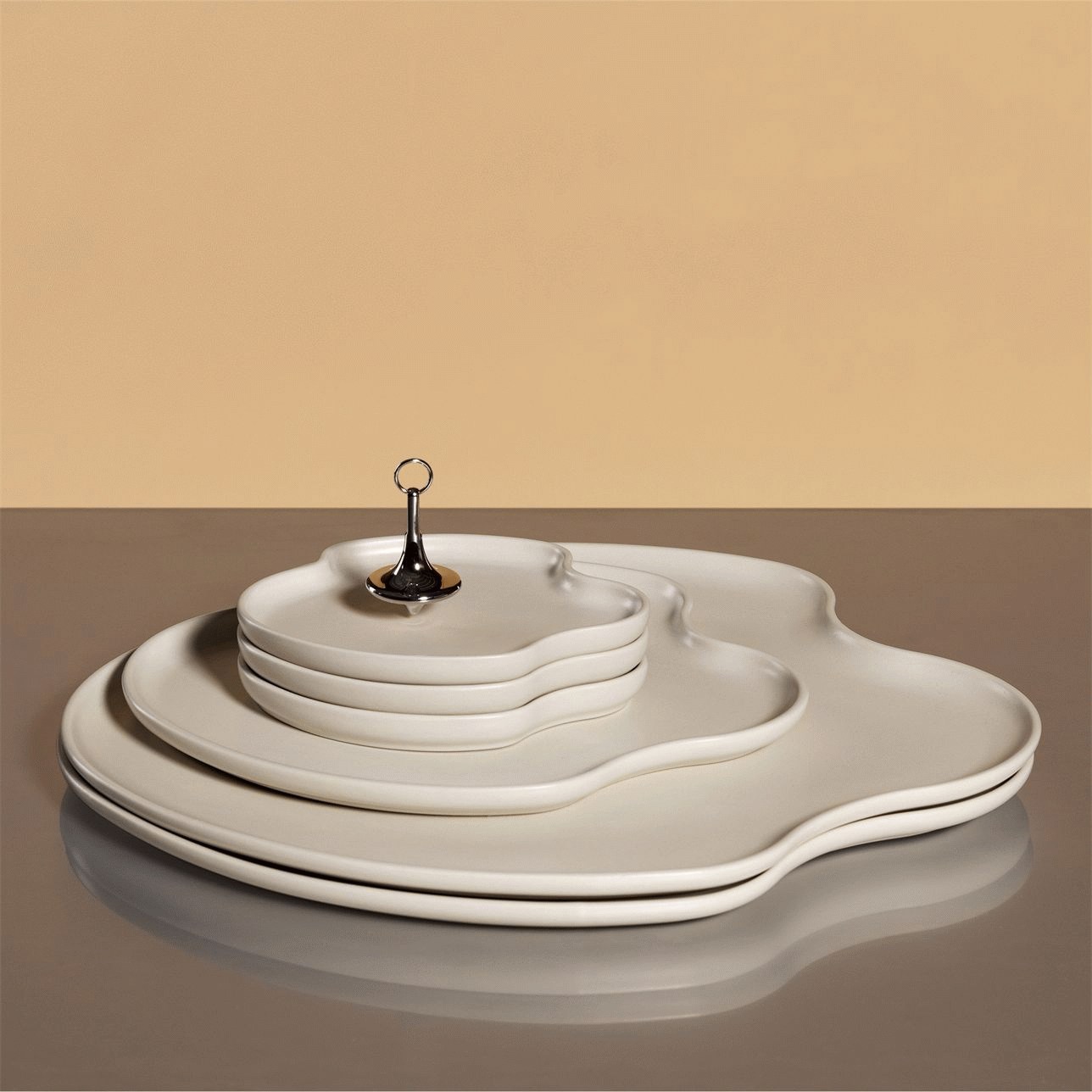 Die architektonischen Proportionen machen sie zu einem natürlichen Mittelpunkt, egal ob du Antipasti, Brot, Obst servierst oder sie nutzt, um saisonale Dekorationen zu präsentieren. Der robuste Charakter des Steinzeugs sorgt dafür, dass die Platte den täglichen Gebrauch problemlos meistert und lebensmittelecht ist. Für alle, die ein stimmiges Gesamtbild schaffen möchten, lässt sich diese Platte hervorragend mit anderen Größen aus der Aalto-Serie kombinieren. Eine Aufstellung mehrerer Platten in unterschiedlichen Dimensionen verleiht deiner Tischdekoration Tiefe und Abwechslung und schafft ein visuell interessantes Ensemble.