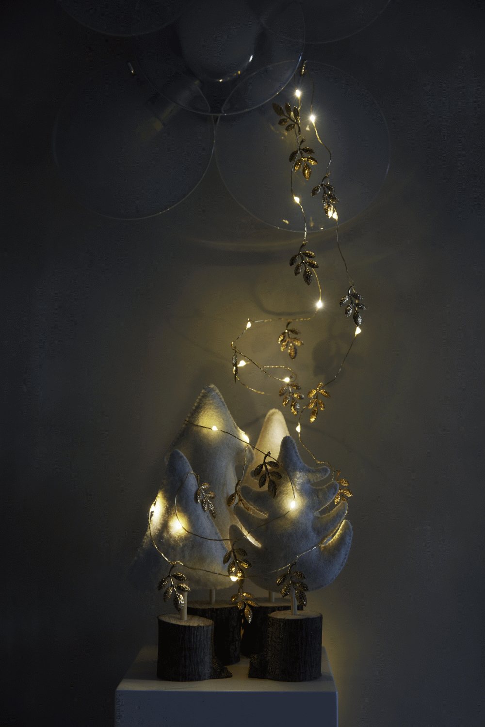 Mit einer Gesamtlänge von 2 Metern plus 30 Zentimeter Zuleitung zur Batteriehalterung bietet diese Lichterkette maximale Flexibilität bei der Platzierung. Der batteriebetriebene Betrieb eliminiert die Notwendigkeit von Steckdosen und gewährleistet eine saubere, minimalistische Aufstellung. Das Design ist für den Innenbereich optimiert, wo die goldenen Blätter das warme LED-Licht reflektieren und stimmungsvolle Lichtreflexe erzeugen.