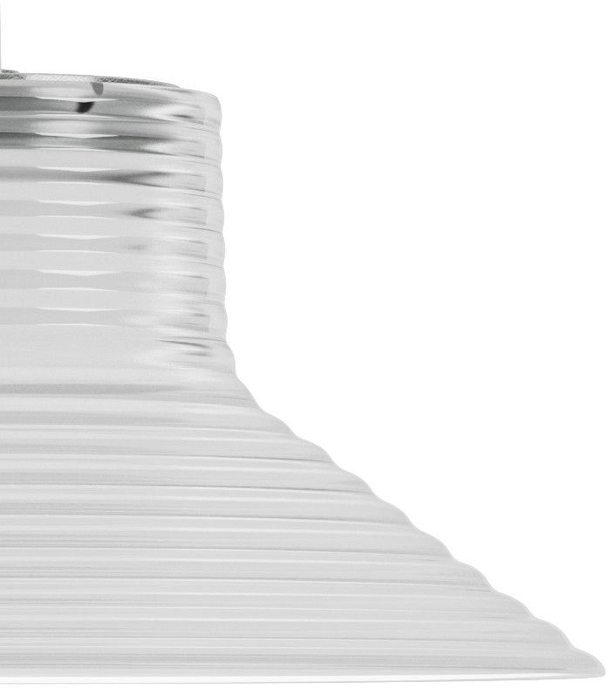 Das geriffelte Opalglas erzeugt eine wunderbar weiche und diffuse Lichtverteilung, die eine behagliche Atmosphäre in deinem Zuhause schafft. Die transparente Konstruktion lässt das Licht natürlich ausbreiten, während das charakteristische geriffelte Muster interessante Texturen und faszinierende Schatteneffekte hinzufügt. Mit einem kompakten Durchmesser von 20,8 cm eignet sich diese Pendelleuchte perfekt für kleinere Räume oder als Teil einer Gruppe über deiner Kücheninsel oder dem Esstisch.