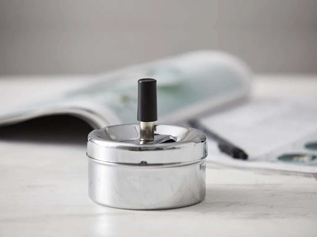 Mit diesem innovativen Aschenbecher aus hochwertigem Chrom bringst du eine perfekte Kombination aus Funktionalität und skandinavischem Design in dein Zuhause. Der elegante Aschenbecher mit 9 cm Durchmesser fügt sich diskret in jede Wohnumgebung ein und überzeugt durch seine durchdachte Konstruktion für den modernen Raucher.Die polierte Chromoberfläche verleiht dem Aschenbecher einen zeitlosen und stilvollen Ausdruck, der harmonisch mit verschiedenen Einrichtungsstilen verschmilzt. Das hochwertige Material steht für Langlebigkeit und einfache Pflege – ein einfaches Abwischen genügt meist, um den glänzenden Look zu erhalten.