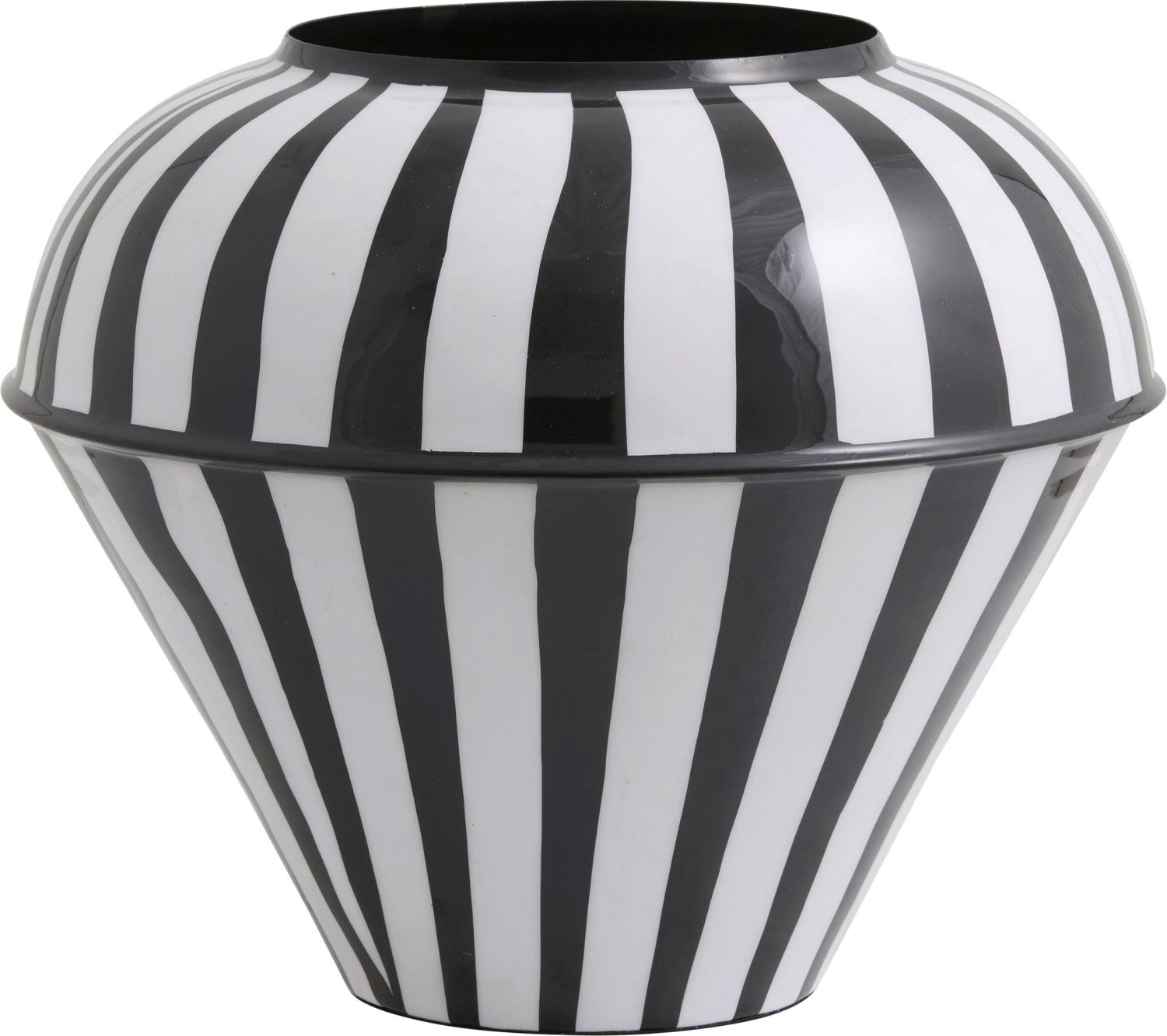 Mit ihrer grafischen Eleganz und industriellen Robustheit wird diese charaktervolle Eisenvase zu einem echten Blickfang in deinem Zuhause. Die Nordal Sipura Vase beeindruckt mit ihrer markanten schwarz-weißen Streifenoptik im Decal-Finish, die sofort ein visuelles Statement setzt und deiner Einrichtung Persönlichkeit verleiht.Die breite, skulpturale Form mit ihrer großzügigen Öffnung von 15 cm macht sie zur perfekten Wahl für voluminöse Blumensträuße, in denen sich die Blüten natürlich entfalten können. Gleichzeitig funktioniert sie hervorragend als eigenständiges Dekorationsobjekt, das durch ihren grafischen Ausdruck und ihre künstlerische Präsenz die Aufmerksamkeit auf sich zieht.