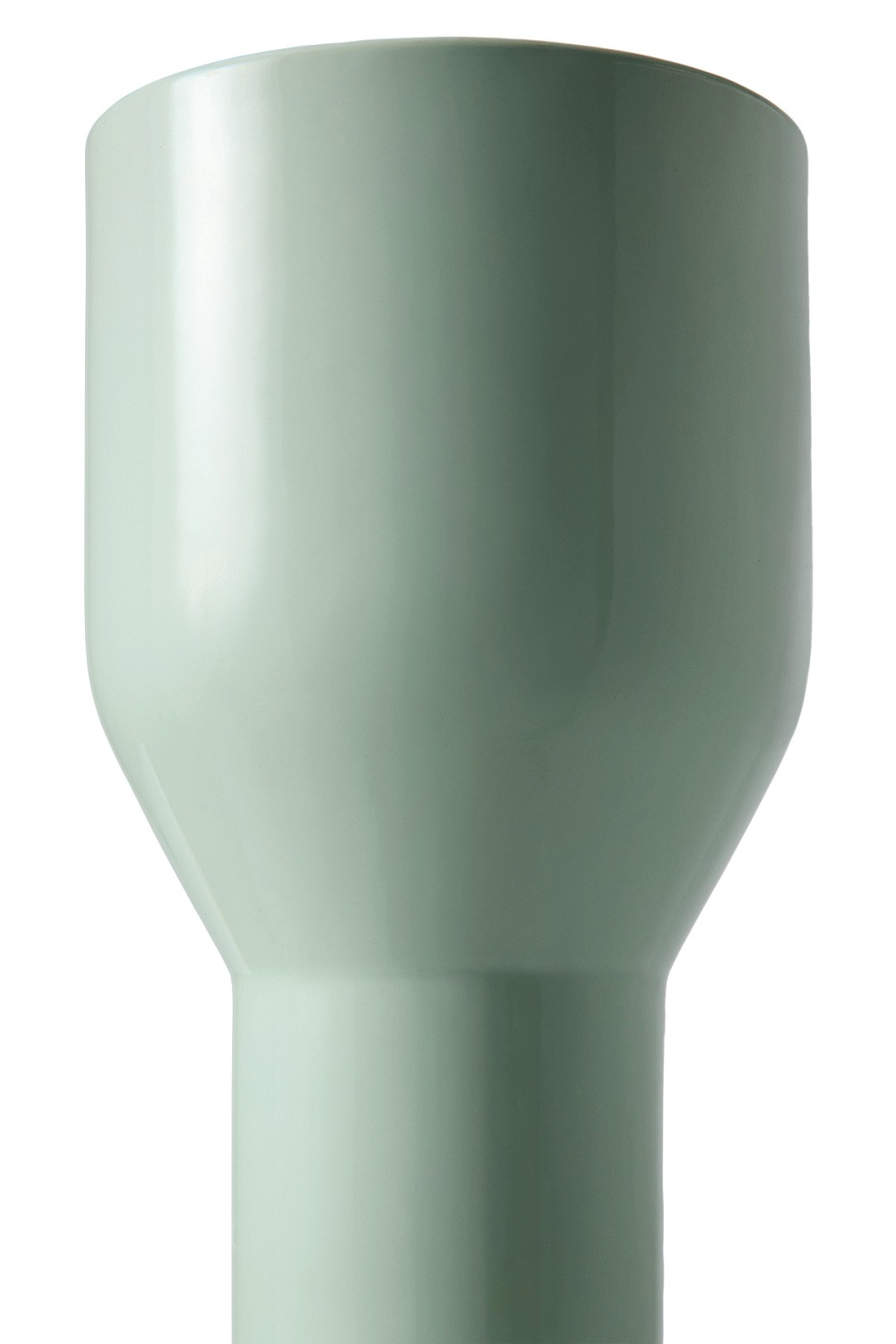 Diese keramische Vase von Studio About vereint architektonische Eleganz mit funktionaler Schönheit und bietet deinen Blumenarrangements das perfekte Fundament. Entworfen von Architekt Mikkel Lang Mikkelsen, besticht die Flowershade durch ihre hohe, ausschwingende Silhouette, die sowohl üppigen Sträußen als auch skulpturalen Blumenkompositionenen natürlichen Raum gibt. Die glänzende Glasur in der wunderschönen Minze-Farbe verleiht jeder Einrichtung Tiefe und Charakter, während die schlichte Form die Vase mühelos in verschiedene Wohnstile integrierbar macht.Mit ihrer imposanten Höhe von 28,5 cm und einem Durchmesser von 16,3 cm hat die Flowershade eine starke Präsenz, die sowohl als eigenständiges Designelement als auch gefüllt mit Blumen hervorragend funktioniert. Das großzügige Fassungsvermögen von 3,2 Litern macht sie ideal für größere Arrangements, während das elegante Profil selbst einfachen Aufstellungen einen professionellen Ausdruck verleiht. Die glasierte Oberfläche ist nicht nur ästhetisch ansprechend, sondern auch praktisch und leicht zu reinigen.