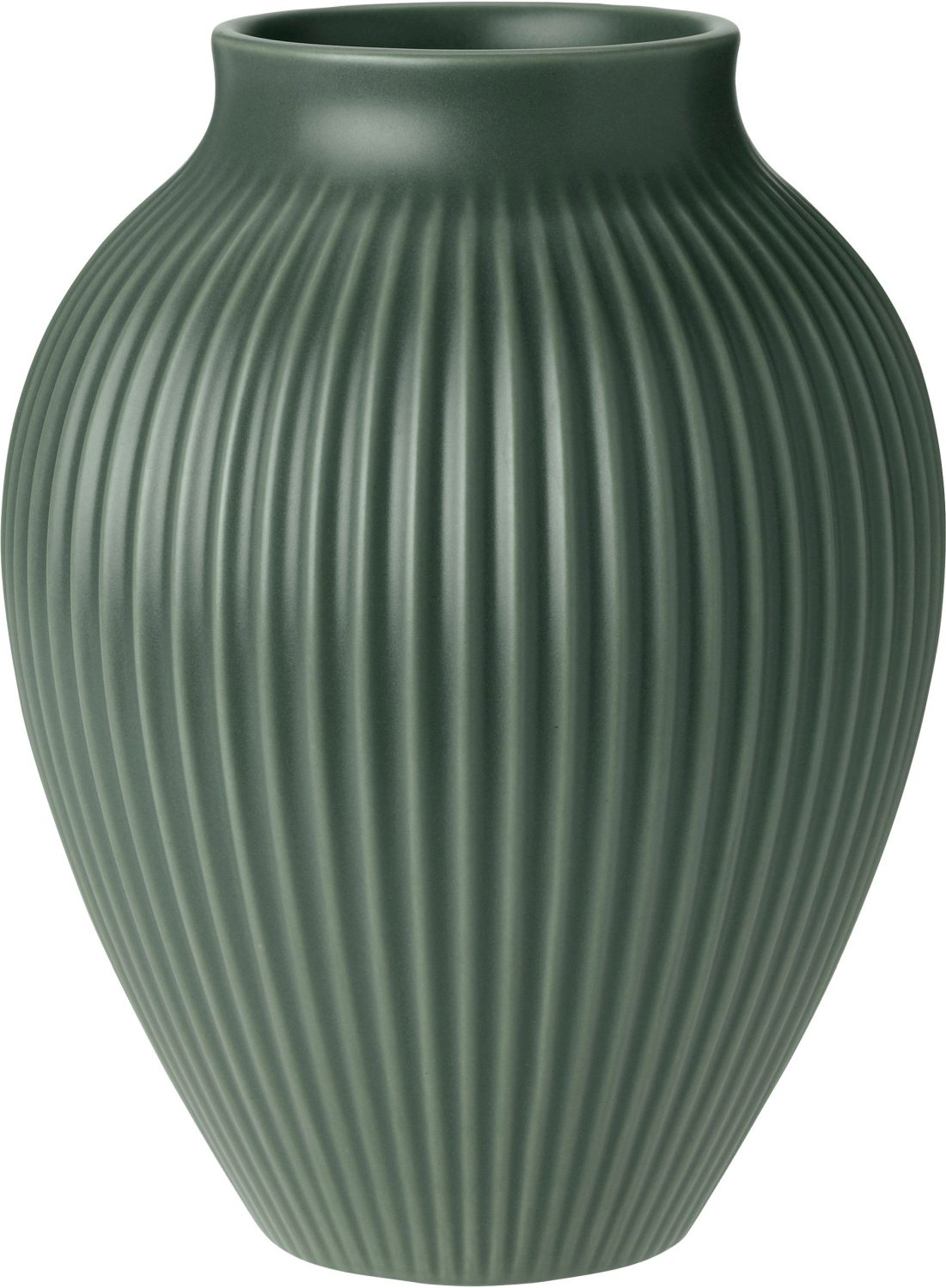 Mit ihrer charakteristischen Ripple-Oberfläche bringt diese außergewöhnliche Vase von Knabstrup Keramik eine moderne Interpretation des ikonischen Designs aus den späten 1940er Jahren in dein Zuhause. Die matte Celadon Green Farbe verleiht diesem exklusiven Keramikstück eine zeitlose Eleganz, die perfekt mit dem skandinavischen Wohnstil harmoniert.Die durchdachte Formgebung dieser 20 cm hohen Vase sorgt dafür, dass sowohl saisonale Blumensträuße als auch dekorative Zweige auf die schönste Weise zur Geltung kommen. Das charakteristische Ripple-Design an der Oberfläche erzeugt ein faszinierendes Spiel aus Licht und Schatten, während die robuste Earthenware-Konstruktion Langlebigkeit und höchste Qualität garantiert.