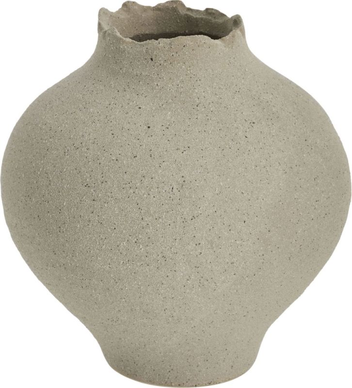 Die Vase ist aus langlebiger Keramik gefertigt, die sowohl dauerhafte Schönheit als auch praktische Verwendbarkeit gewährleistet. Die runde Basis mit 16 cm Durchmesser bietet gute Stabilität, während die organische Öffnung ein künstlerisches Element zum funktionellen Design hinzufügt.
