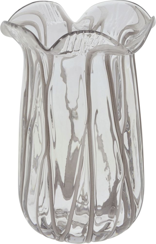 Das klare Glas wurde mit subtilen linearen Texturen veredelt, die das Licht auf besondere Weise einfangen und reflektieren. Diese durchdachte Detailarbeit unterstreicht die künstlerische Form der Vase und macht sie zu einem wunderschönen dekorativen Element – selbst wenn sie leer steht. Mit einem Durchmesser von 12 cm bietet die Alberta Vase die perfekte Größe für frische Blumen ebenso wie für getrocknete Zweige, was sie zu einem vielseitigen Bestandteil deiner Wohneinrichtung macht.