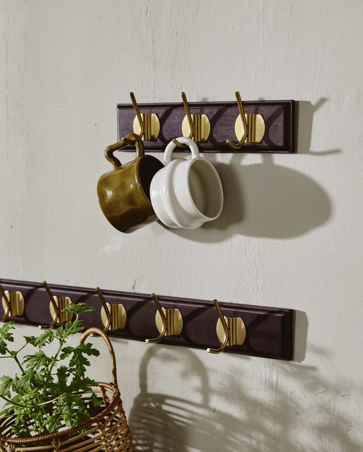 Die drei stabilen Haken sind darauf ausgelegt, Jacken, Taschen, Schals und andere Accessoires aufzunehmen, während die kompakte Größe sie ideal für kleinere Räume oder als Ergänzung zu vorhandenen Aufbewahrungsmöglichkeiten macht. Die dunkelbraune Farbe harmoniert wunderbar mit verschiedenen Einrichtungsstilen und schafft eine warme Atmosphäre in deinem Raum.