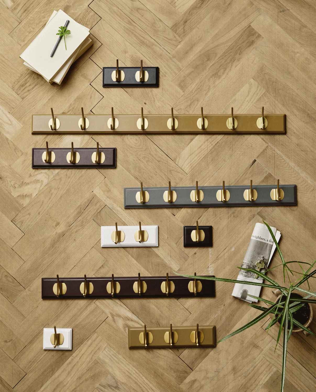 Die stilvolle Kombination aus dunklem Holzlook und warmen Metalldetails verleiht der Hakenleiste einen exklusiven Ausdruck, der sich harmonisch in klassische wie moderne Einrichtungsstile einfügt. Das grafische Design fungiert als schöne Wanddekoration, selbst wenn sie gerade nicht genutzt wird – mehr als nur eine praktische Lösung also.